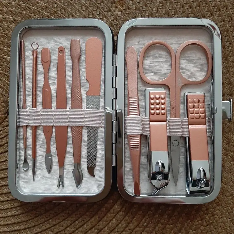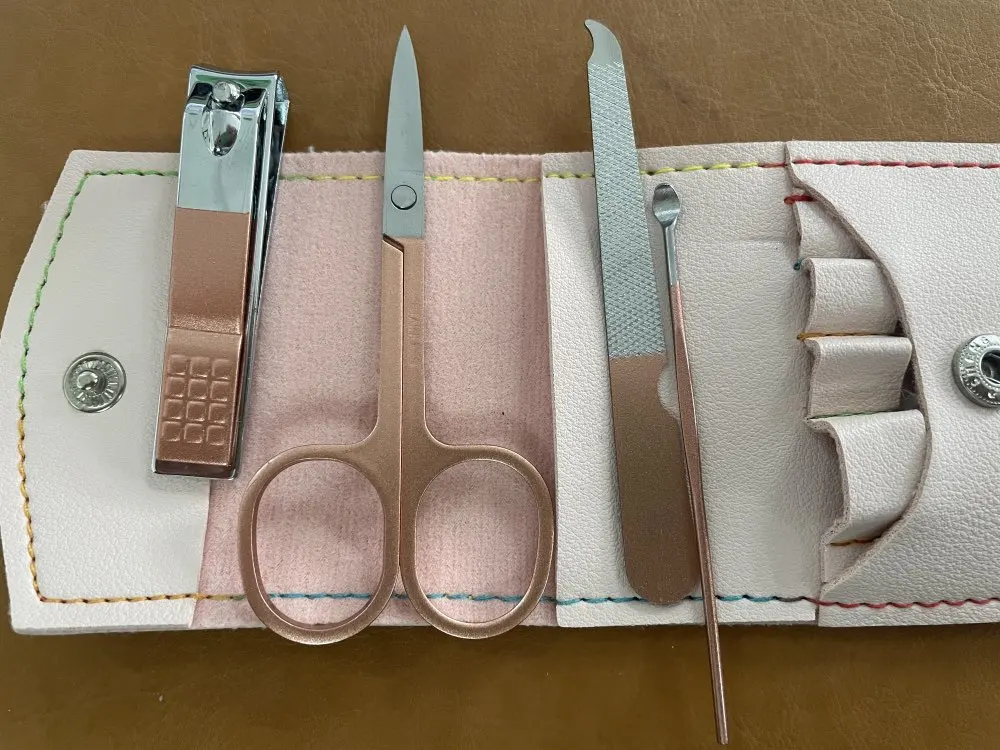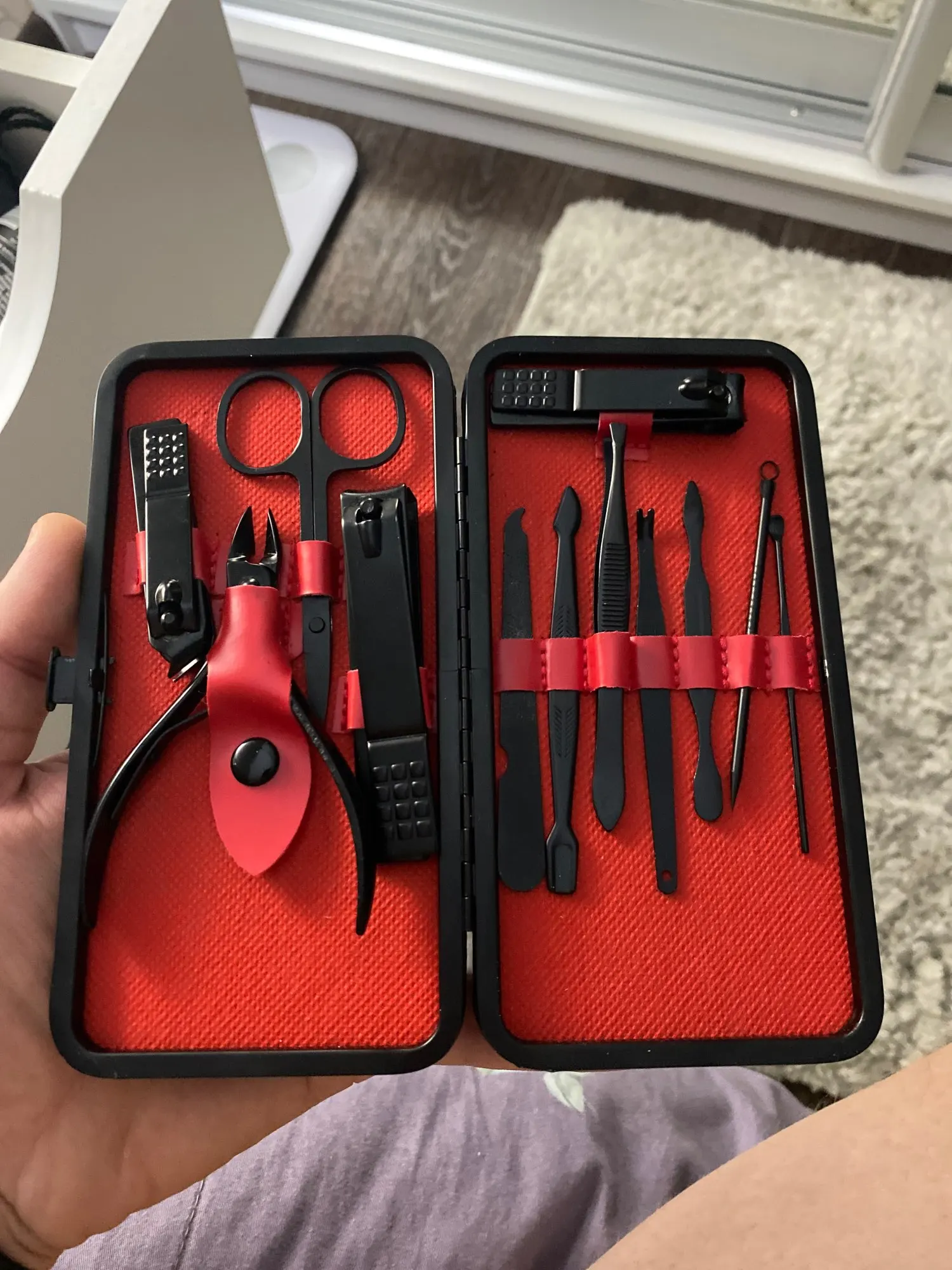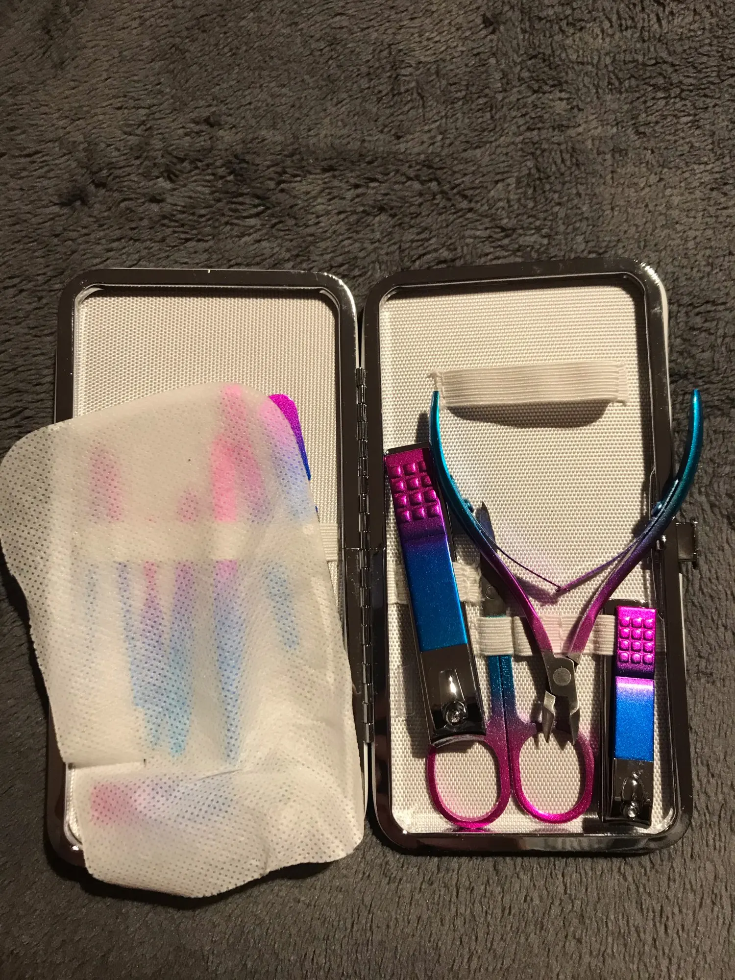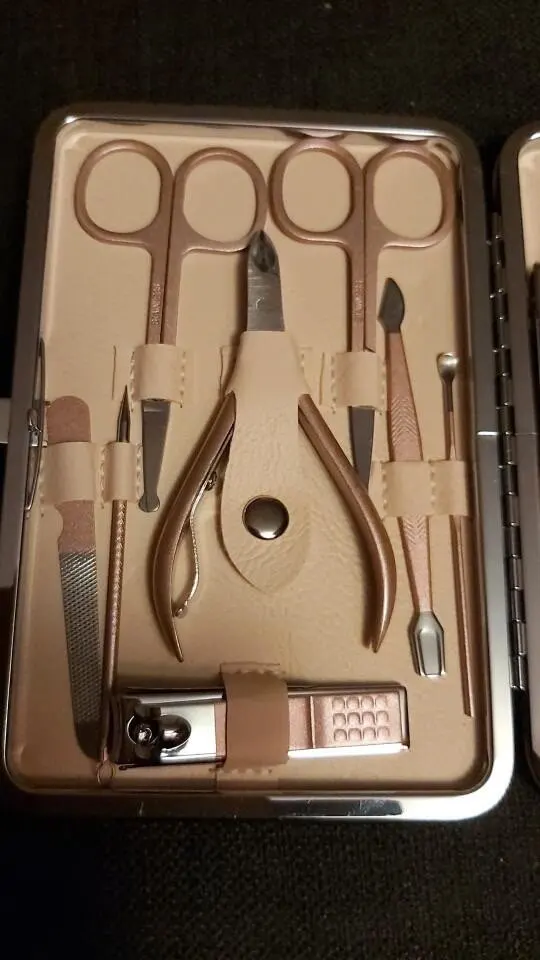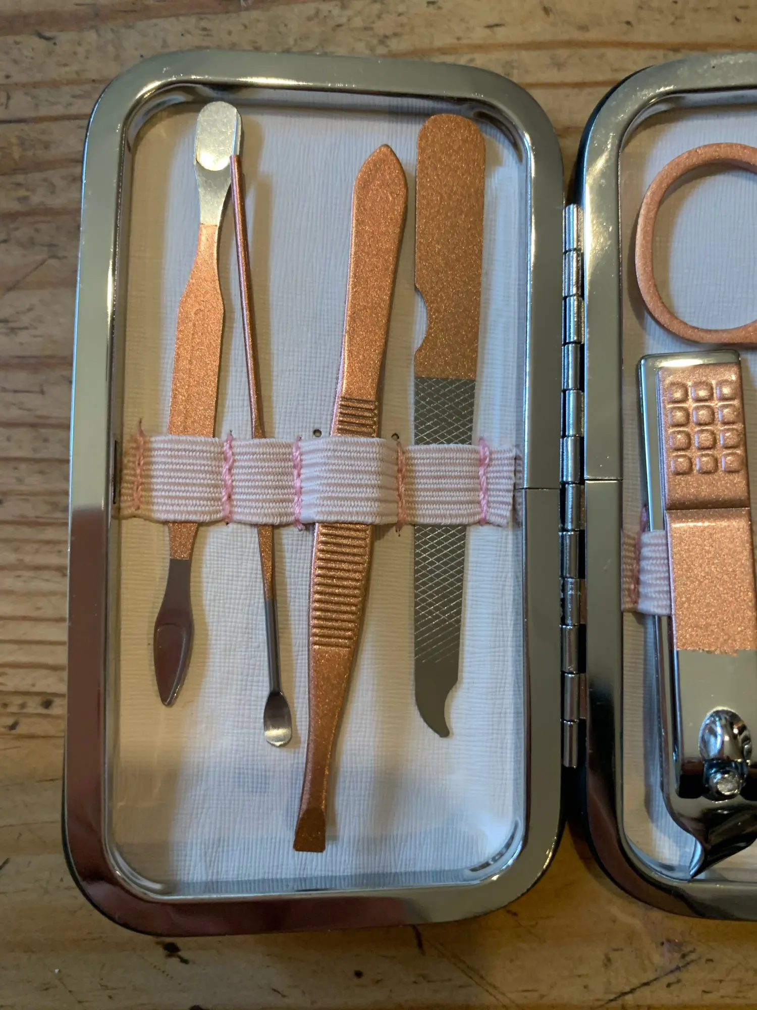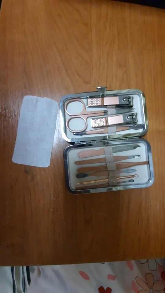 Очень ждала этот набор, слегка разочаровалась (до этого был простой от орифлейма - много лет служил без нареканий). Из плюсов - хорошая коробочка, Кусачки, резаки, всякие штуки для ушей, качество покраски изделий . Из минусов - от пилочки понятно можно было ничего не ждать, пара лопаток совсем игрушечные, не как на фото. Ножницы были как будто с разных собраны - одно лезвие прямое, другое с загибом. И краска местами заходит на рабочую поверхность . Так же не понравилось как пришиты резинки на футляре - думаю быстро распушатся. За нюансы продавец сделал скидку, за что спасибо. Доукомплектовала некоторые предметы своими и в целом довольна.