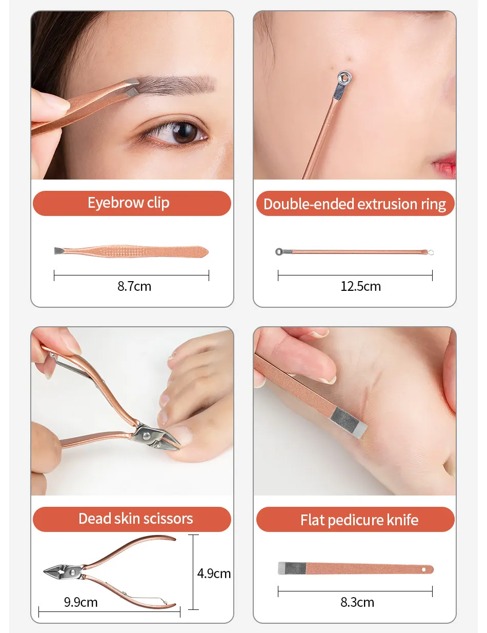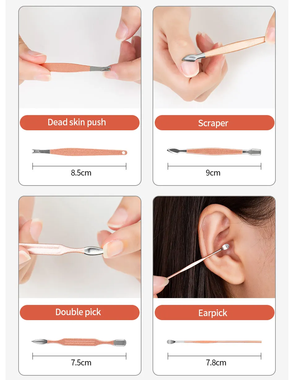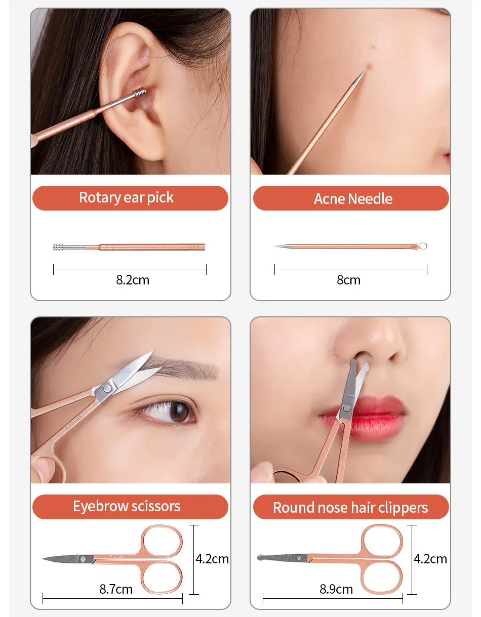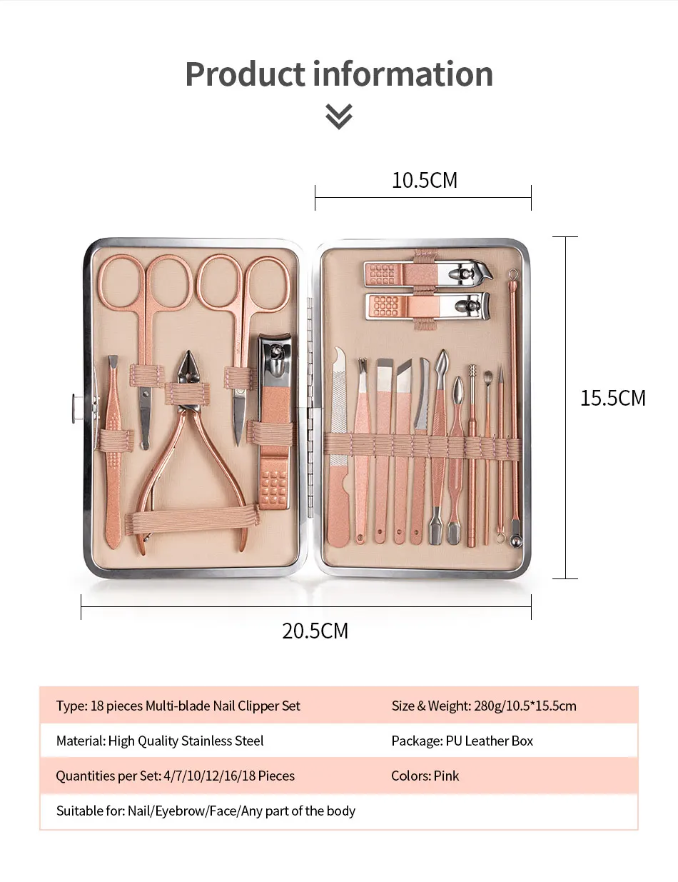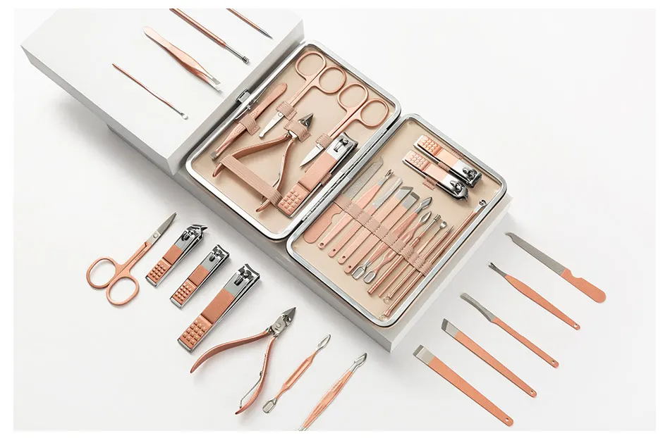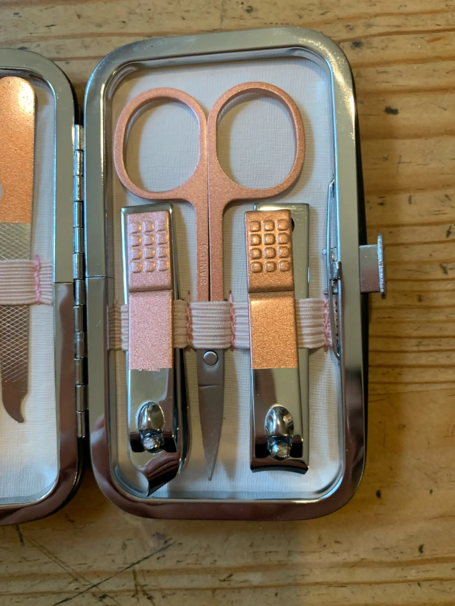 Очень ждала этот набор, слегка разочаровалась (до этого был простой от орифлейма - много лет служил без нареканий). Из плюсов - хорошая коробочка, Кусачки, резаки, всякие штуки для ушей, качество покраски изделий . Из минусов - от пилочки понятно можно было ничего не ждать, пара лопаток совсем игрушечные, не как на фото. Ножницы были как будто с разных собраны - одно лезвие прямое, другое с загибом. И краска местами заходит на рабочую поверхность . Так же не понравилось как пришиты резинки на футляре - думаю быстро распушатся. За нюансы продавец сделал скидку, за что спасибо. Доукомплектовала некоторые предметы своими и в целом довольна.
