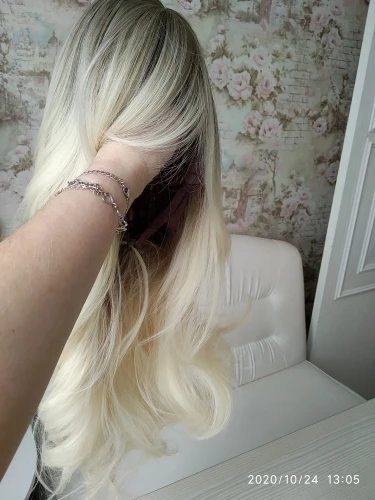 Цвет платиново-пепельная блондинка с омбре, вроде не бликует на свету, приятный парик, красивый цвет. Нужно приноровится с челкой, чтобы она и в глаза не лезла и красиво лежала. Доставка до Томска быстрая. Продавец положил чулок для головы, чтобы спрятать свои волосы. Мне нравится!