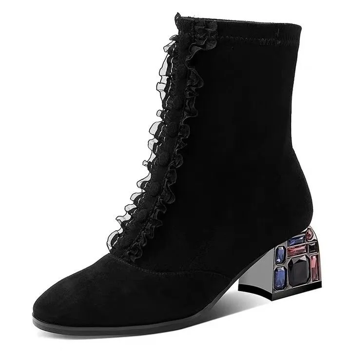 Женские ботильоны на высоком толстом каблуке, осенние ботинки из ис...
