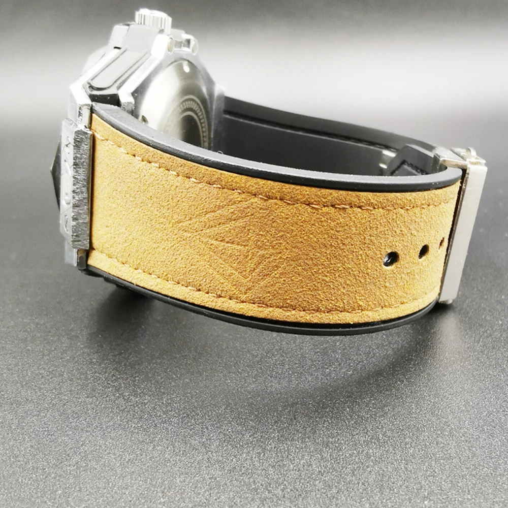 about the bandleather strap - black rubber under lining