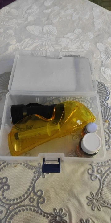 Он работает так, как должен. Лампа хорошо, она достаточно чистая, яркость масла меняется с помощью ультрафиолета и позволяет легко обнаруживать утечки. Очень хорошо, также количество масла, дает довольно много испытаний. Мне не понравились аккумуляторы, на самом деле они довольно плохие, они даже приближаются. Они раздавлены. Отлично, легко зафиксировать.