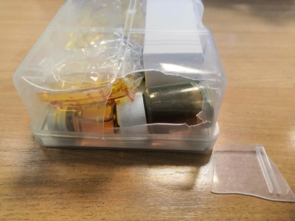 пластиковая коробочка из очень плохого пластика - рассыпалась на кусочки при перевозке, не выдержала, фонарик тоже плюшевый - линза отделилась от корпуса- починил, но в работе всё применимо.