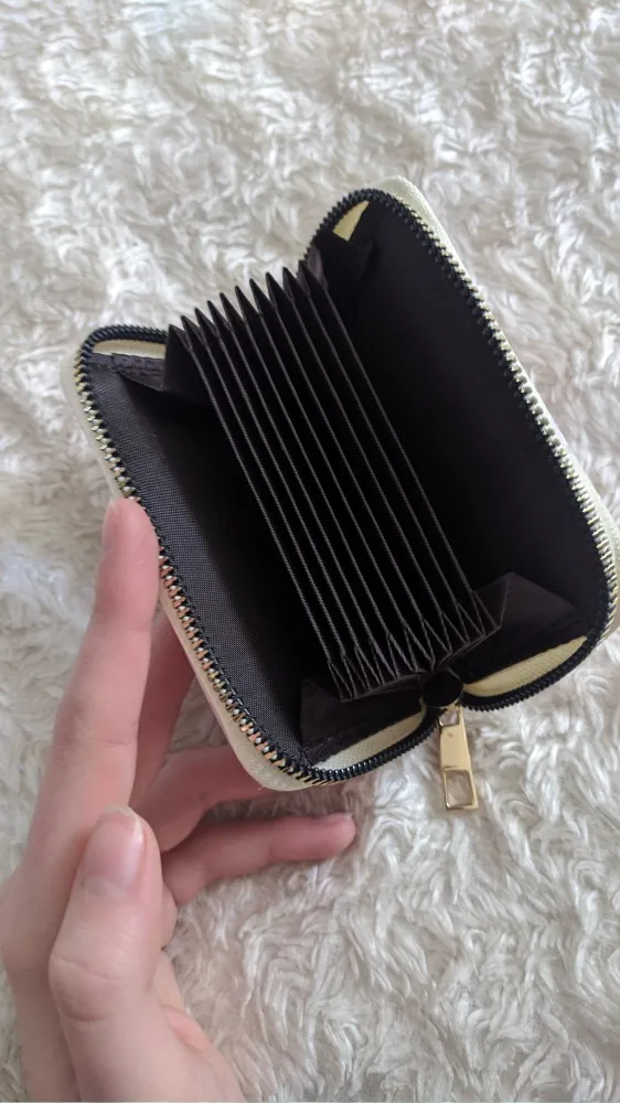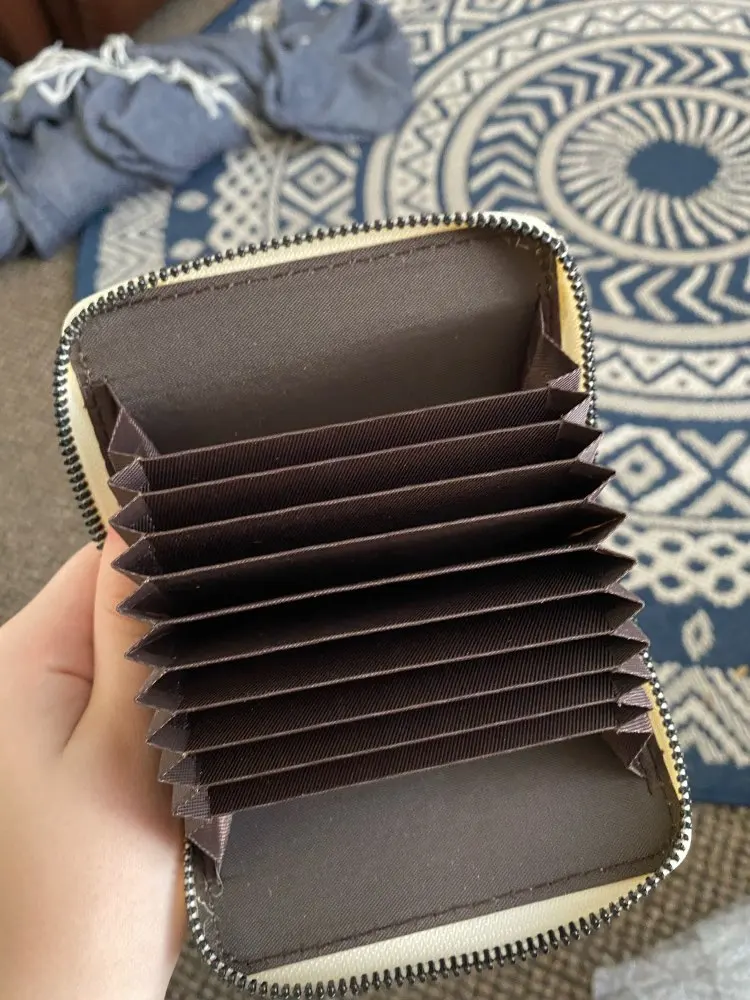 Действительно милый кошелек, это действительно высокое качество по цене и все кажется тактным. У меня есть только проблема в том, что нет рукавов для хранения кредитных карт, удостоверений личности и т. Д.-Это всего лишь несколько открытых отделений. Это не большая проблема, но было бы проще организовать с рукавами на конце, где я мог бы положить карты.
