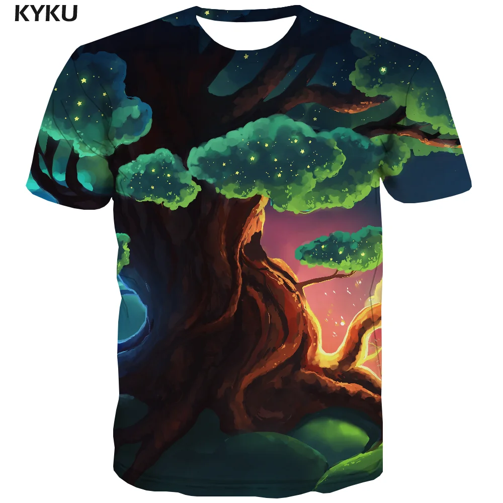 Мужская футболка с принтом в виде дерева KYKU, разноцветная Повседн...