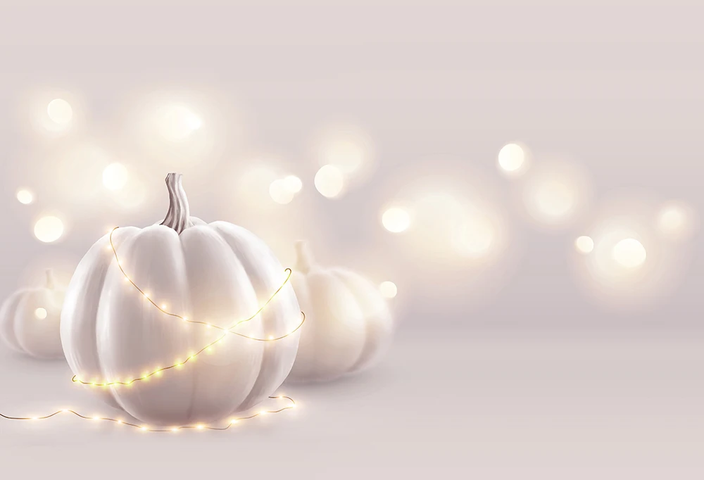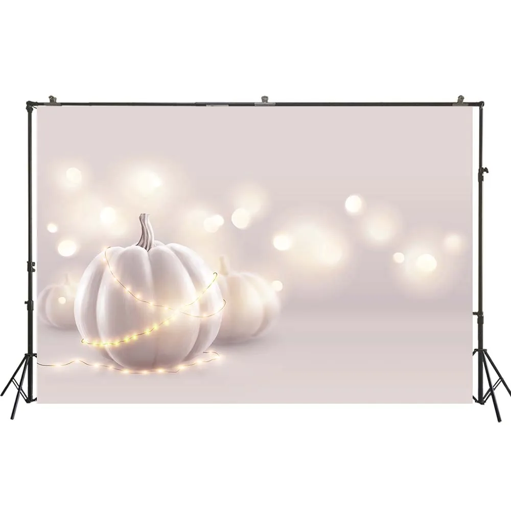 Фон для фотосъемки белые тыквы теплые огни фон Хэллоуин Свадьба мягкий розовый баннер Студия Стенд праздник детский портрет