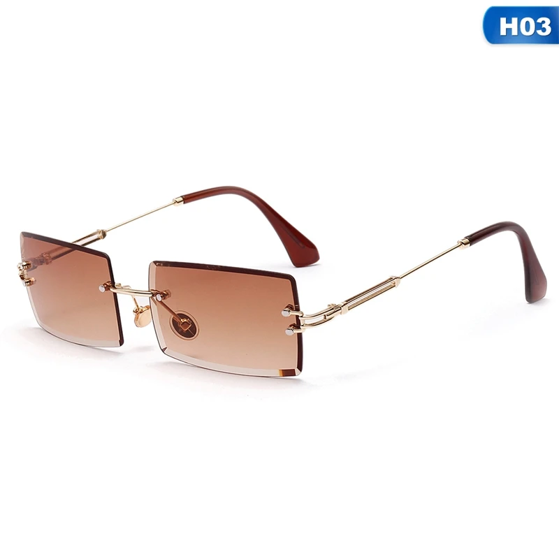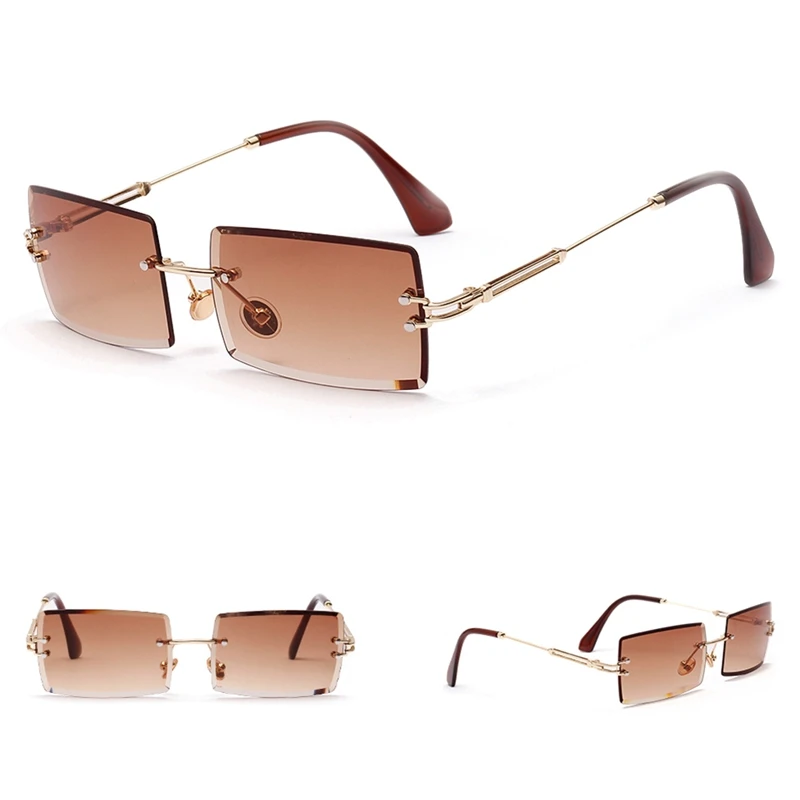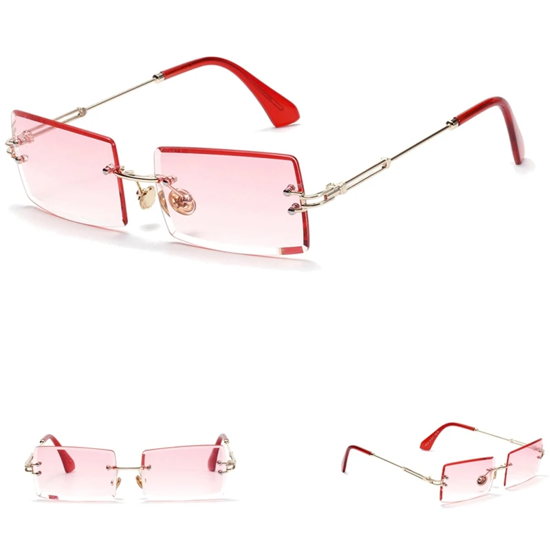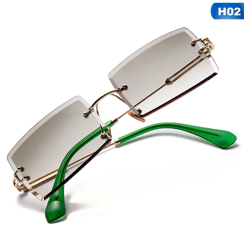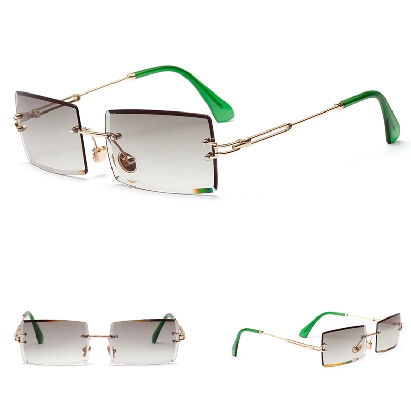 Солнцезащитные очки женские ретро маленькие прямоугольные Квадратные Солнцезащитные очки без оправы Летние Стильные Женские Зеленые Синие