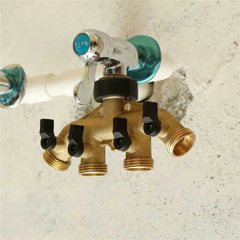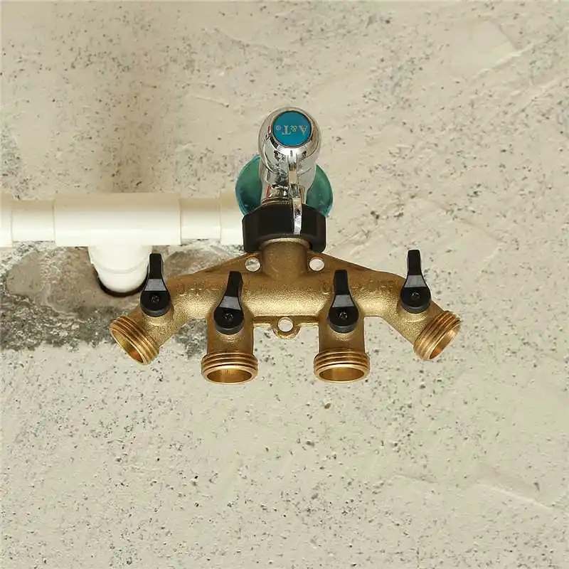 34 дюйма, 4-ходовой латунный шланг для смесителя воды, разветвитель для садового крана, переключатель управления, запорный клапан