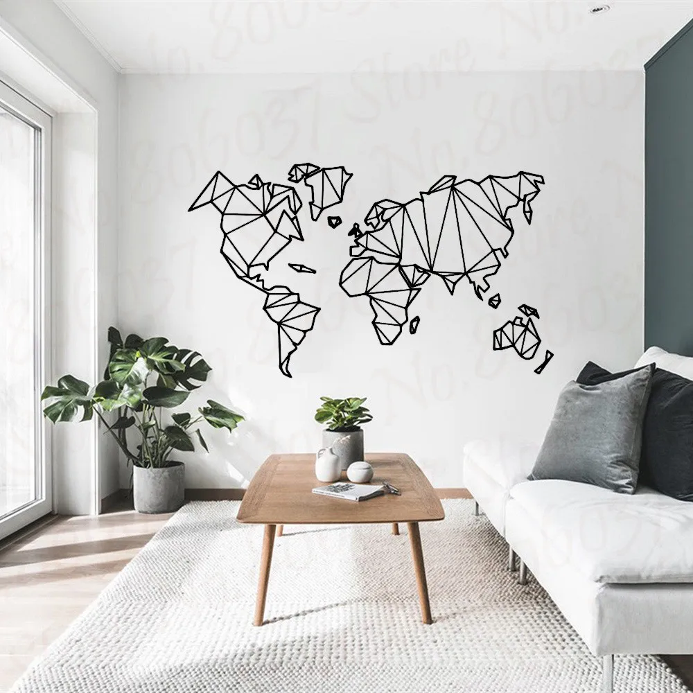 Большой размер Геометрическая карта мира Наклейка на стену виниловая роспись съемные наклейки Декор украшение для дома обои плакат WL2182