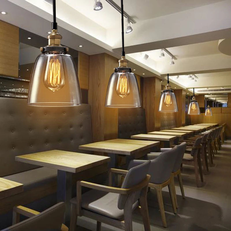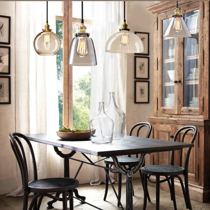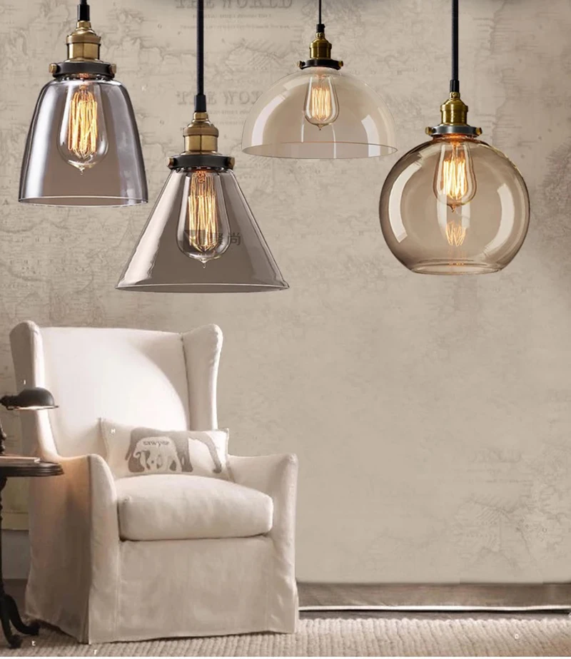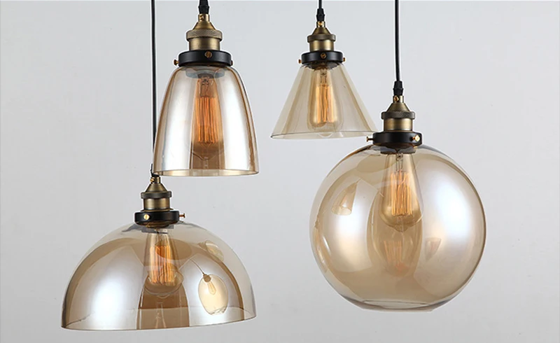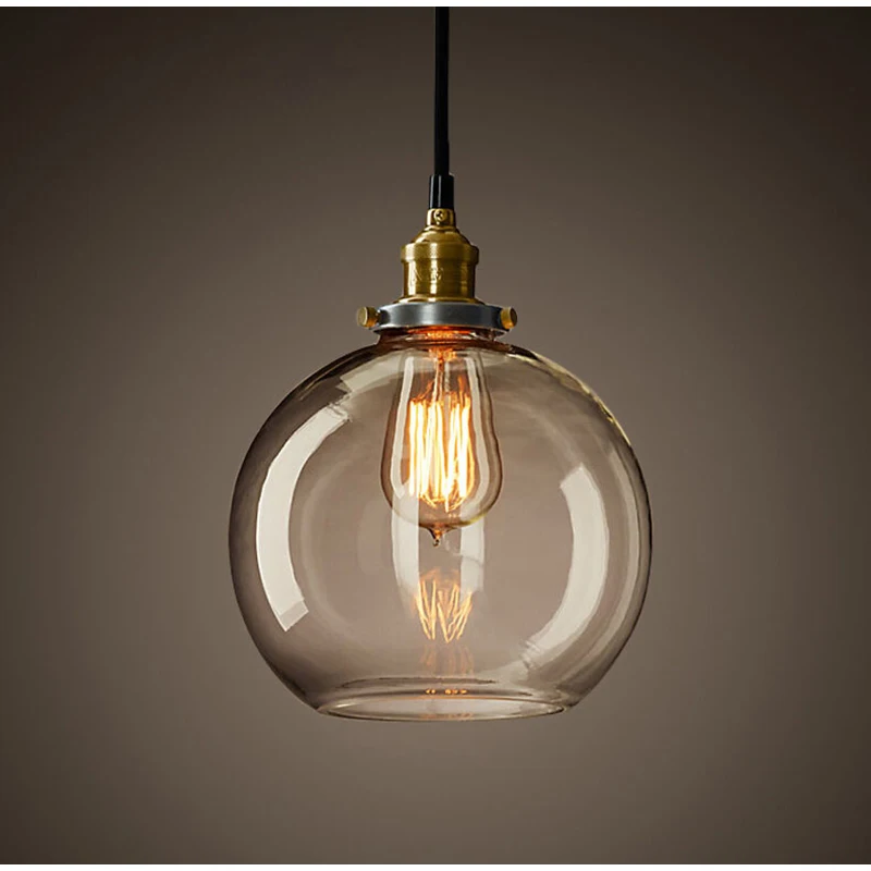 Винтажный подвесной светильник из прозрачного стекла янтарного цвета, скандинавский промышленный светодиодный светильник с одной головкой для кухни, гостиной