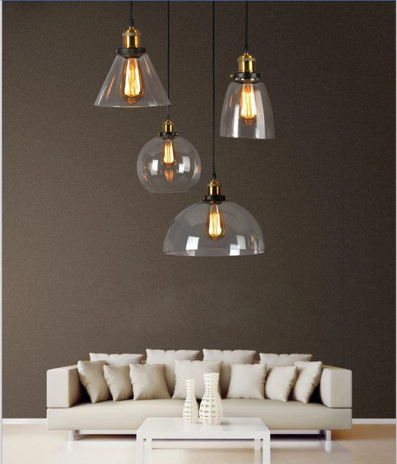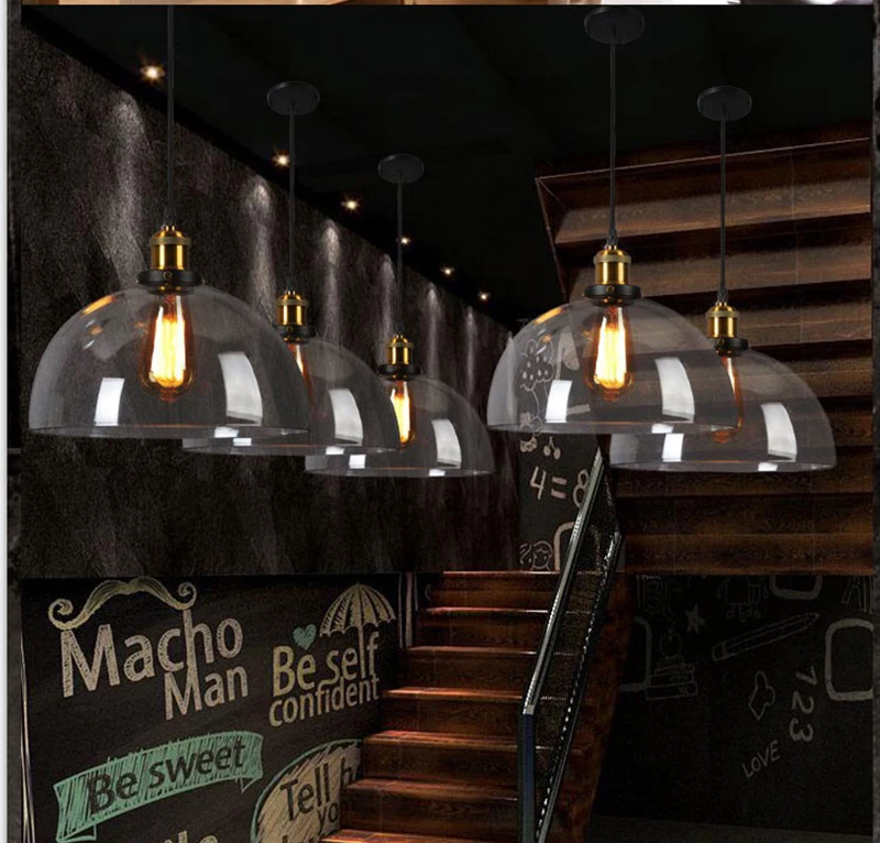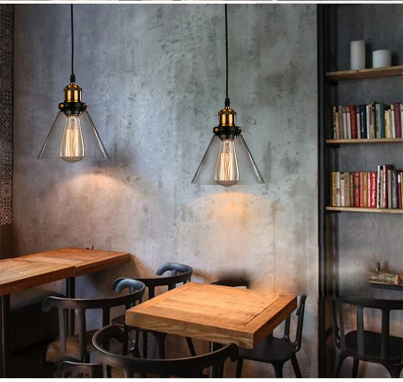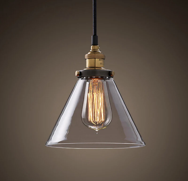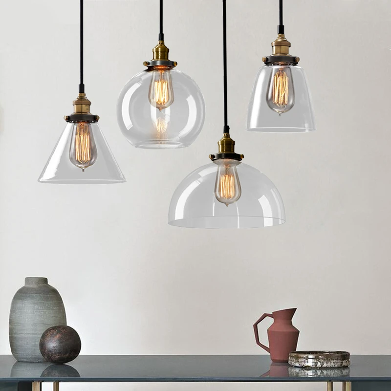Винтажный подвесной светильник из прозрачного стекла янтарного цвета, скандинавский промышленный светодиодный светильник с одной головкой для кухни, гостиной
