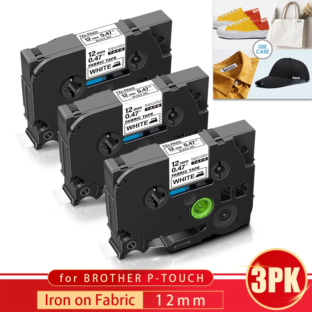 Термоклейкая лента для этикеток Topcolor tz FA231, 12 мм, для нанесения этикеток Brother, PT, tz-FA231, tz, FA231, для глажки этикеток черного и белого цветов
