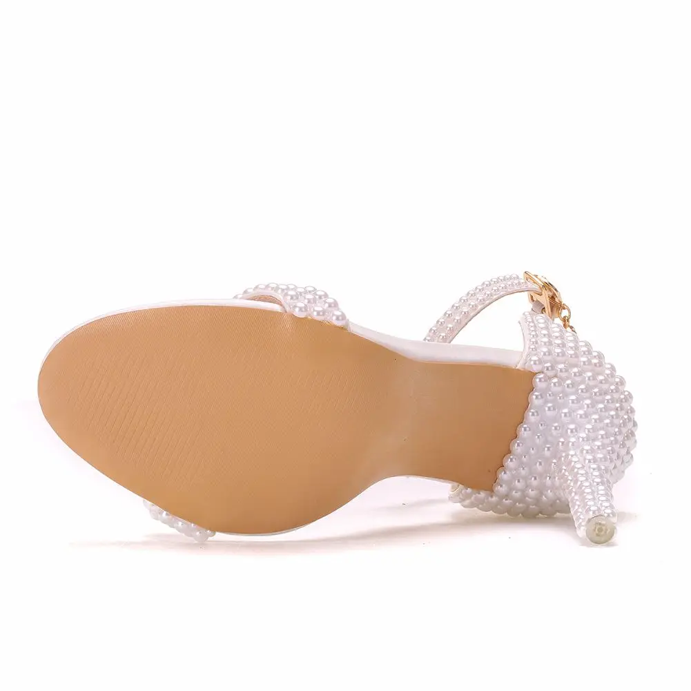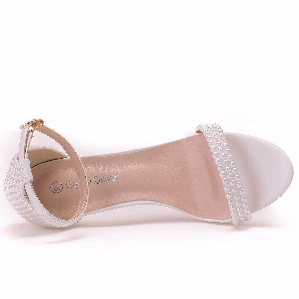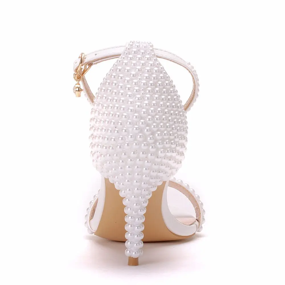 Туфли-лодочки женские на шпильке, с открытым носком и ремешком на щиколотке, белые, свадебные, сандалии под платье, для вечеринки