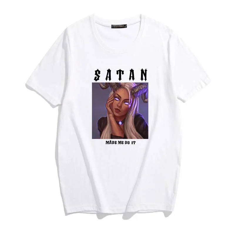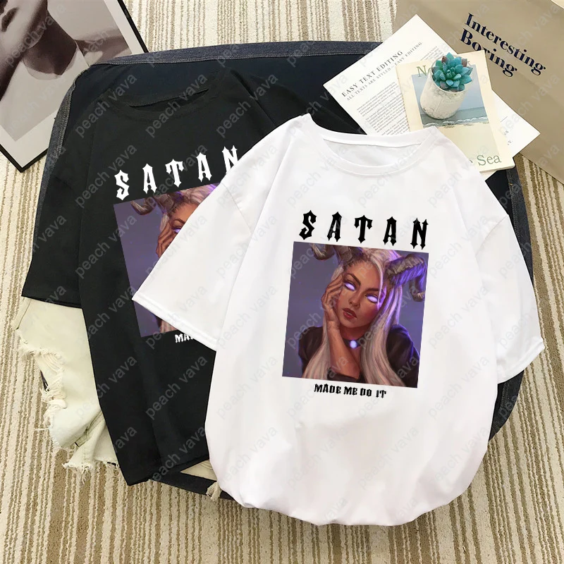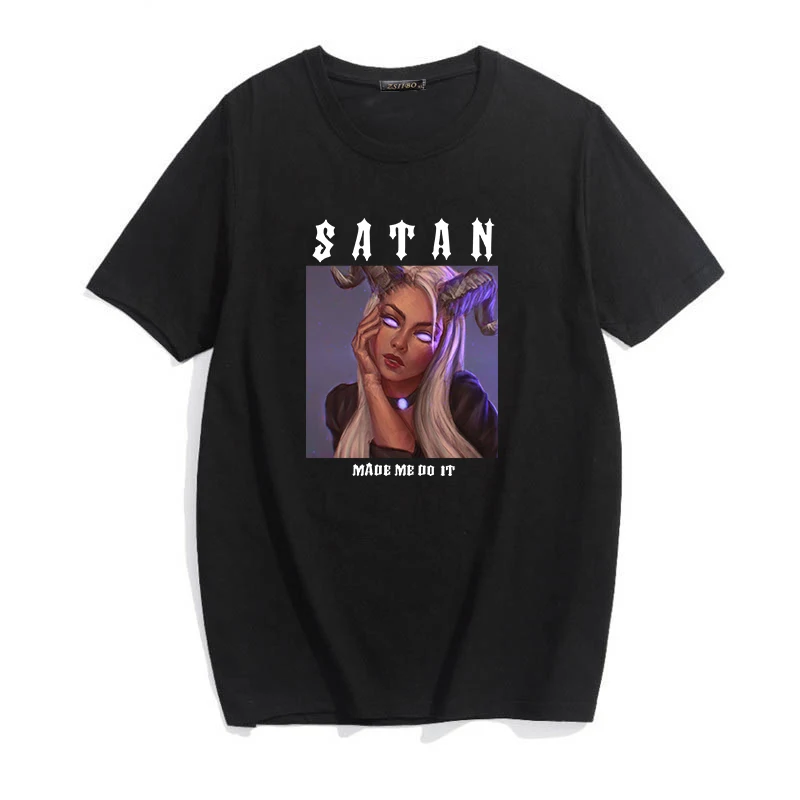 Летняя готическая Черная футболка с надписью сатана, черного дьявол...