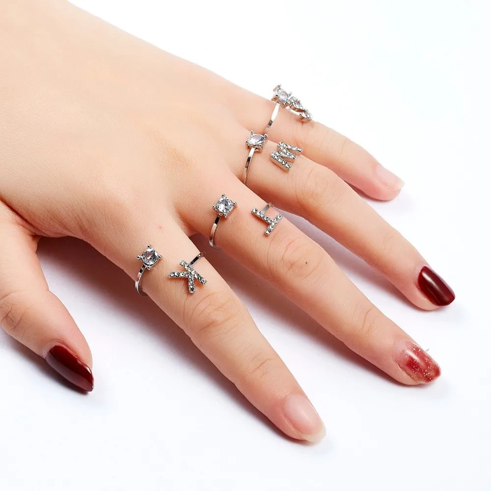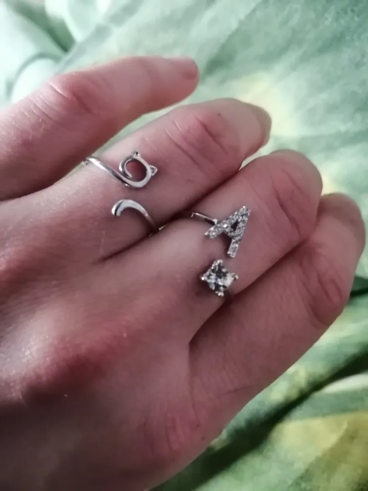 Кольцо женское, с 26 инициалами, золотого и серебряного цветов