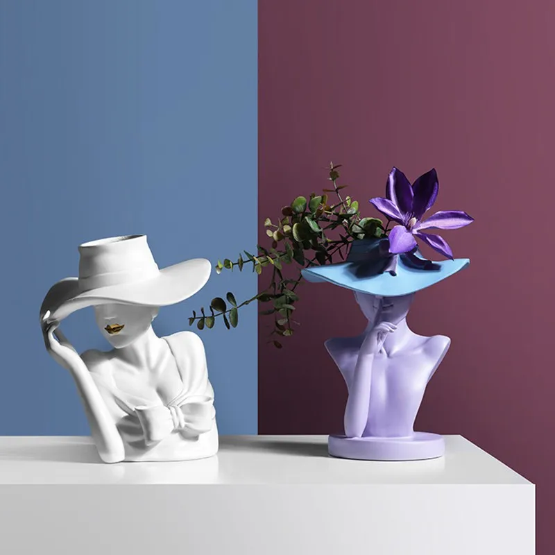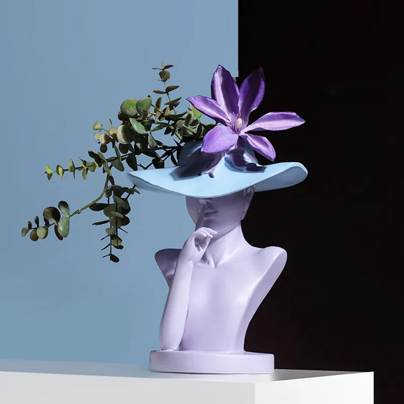 VILEAD Смола креативная красота ваза для цветов белый розовый скандинавский стиль голова человека цветочный горшок для оформления дома Декор для гостиной