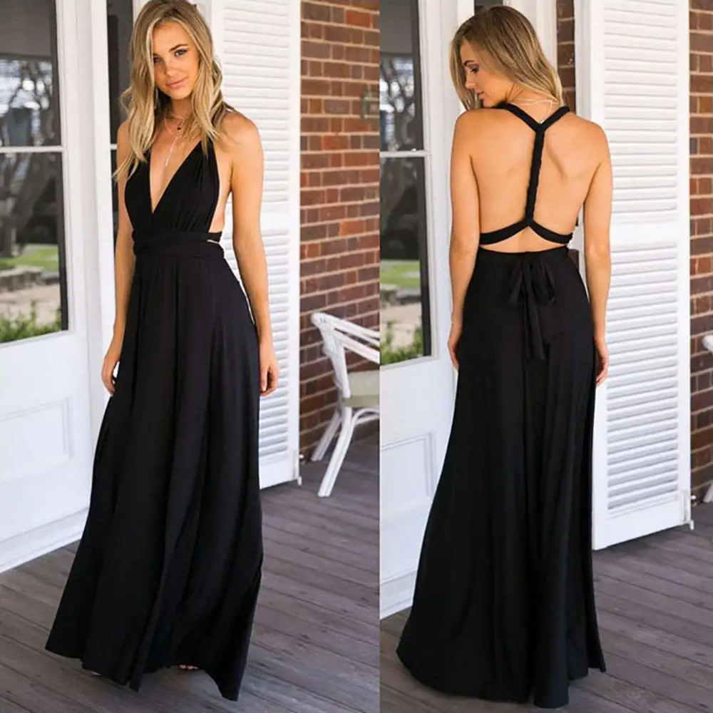 Женское летнее платье сексуальное Потрясающие v-образным вырезом с высокой талией вечерние Однотонное Платье без Рукавов Пол Длина с низким вырезом на спине, женские элегантные вечерние платья