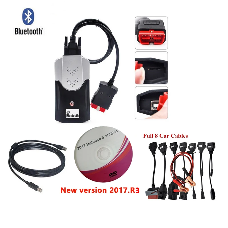 Новинка 2021, сканер Vci 2018R02017R3 Keygen Bluetooth Vd ds150e Cdp для диагностических инструментов Obd Obd2 Delphis + 8 шт. кабелей для автомобилейгрузовиков