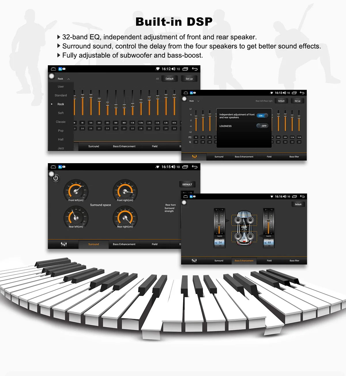 8) Встроенный DSP с 32-полосным эквалайзером.