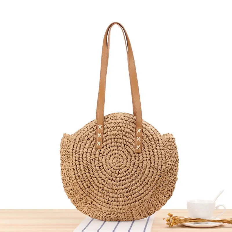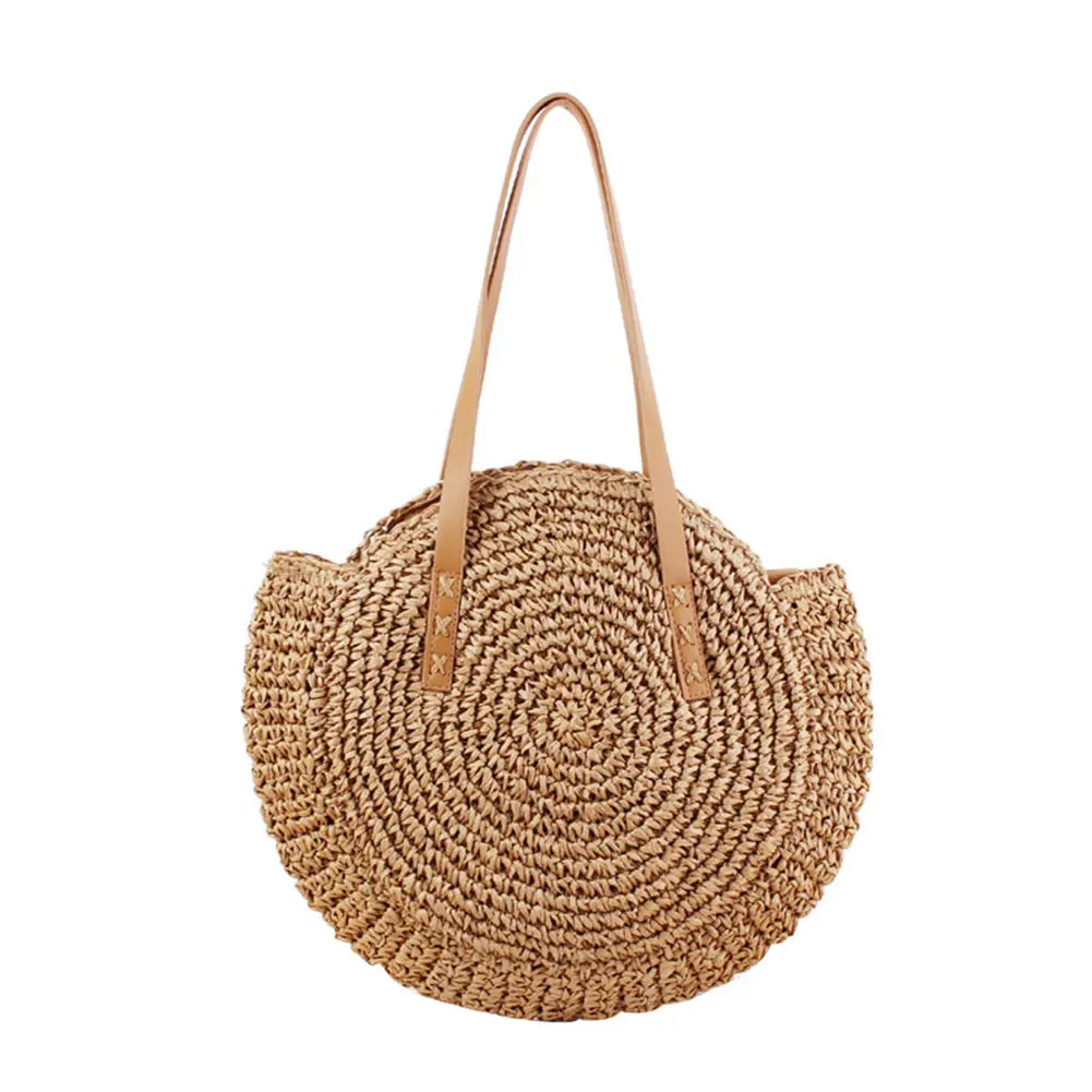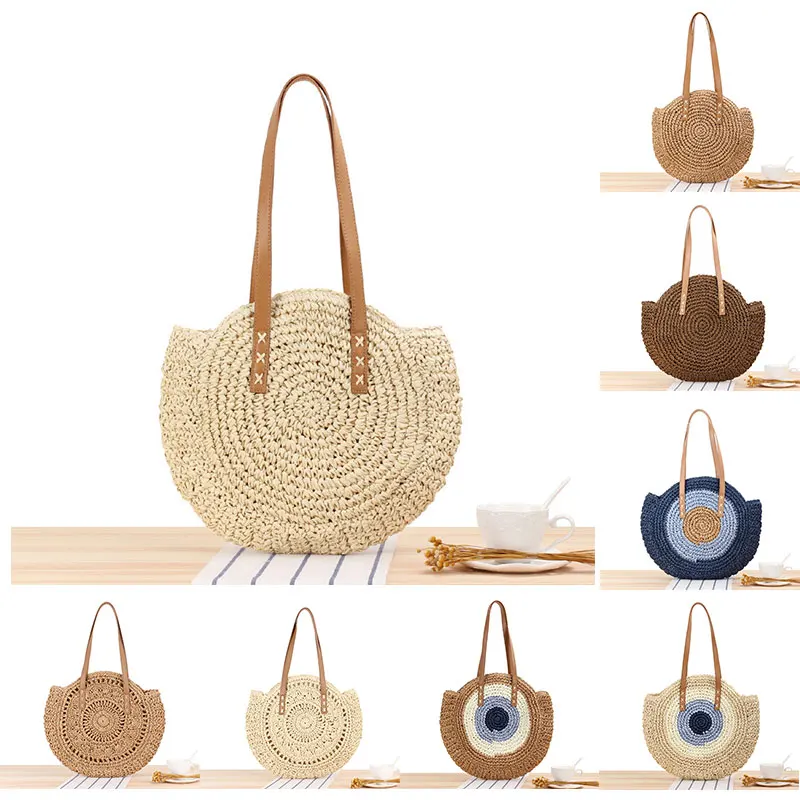 Женская круглая соломенная сумка из ротанга, плетеная, простая, портативная, пляжная
