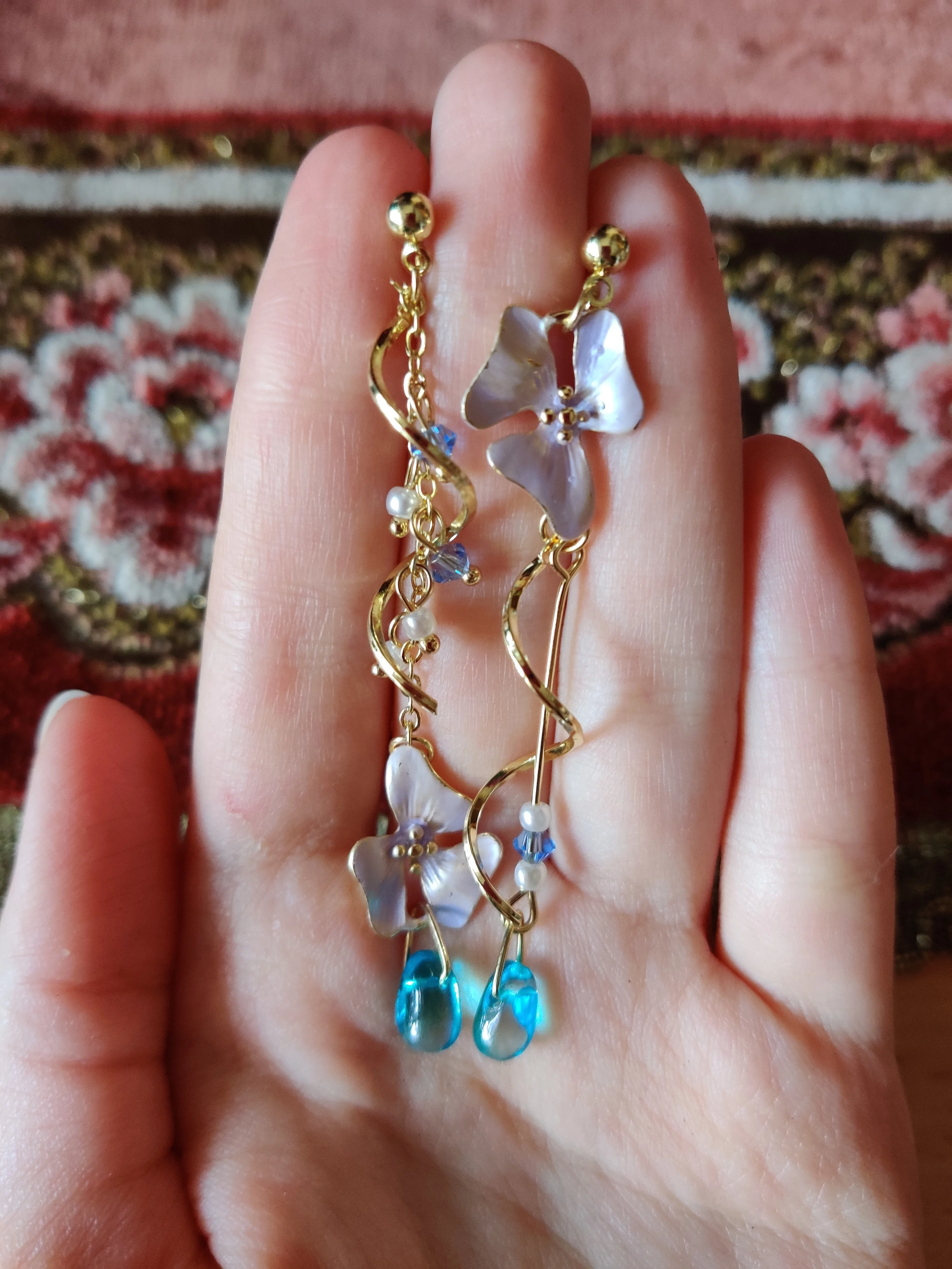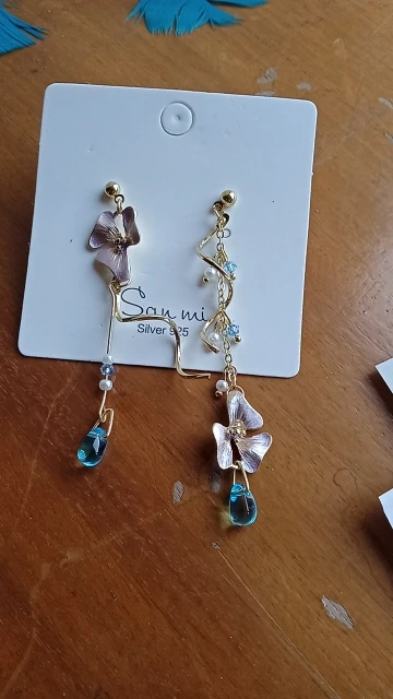 Серьги пришли с поломанными креплениями. Но немного клея, и я все починила. Однако пришлось выравнивать железную часть