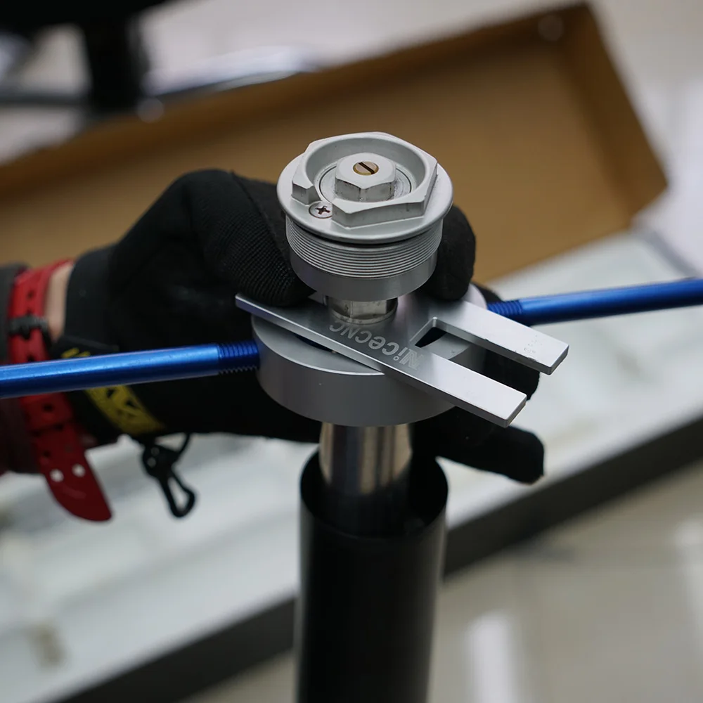 Предназначен для сжатия перевернутых вилочных пружин, чтобы обеспечить доступ к верхней гайке замка крышки для сборки и демонтажа.