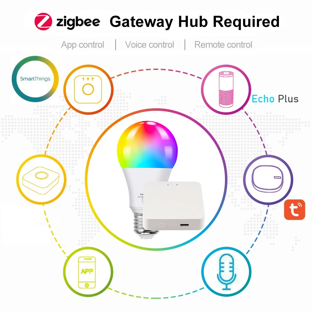 Умная лампочка Zigbee, приглушаемая Светодиодная лампа с Wi-Fi, E27, работает с приложением Alexa Google Home Smart Life, 18 Вт, 15 Вт