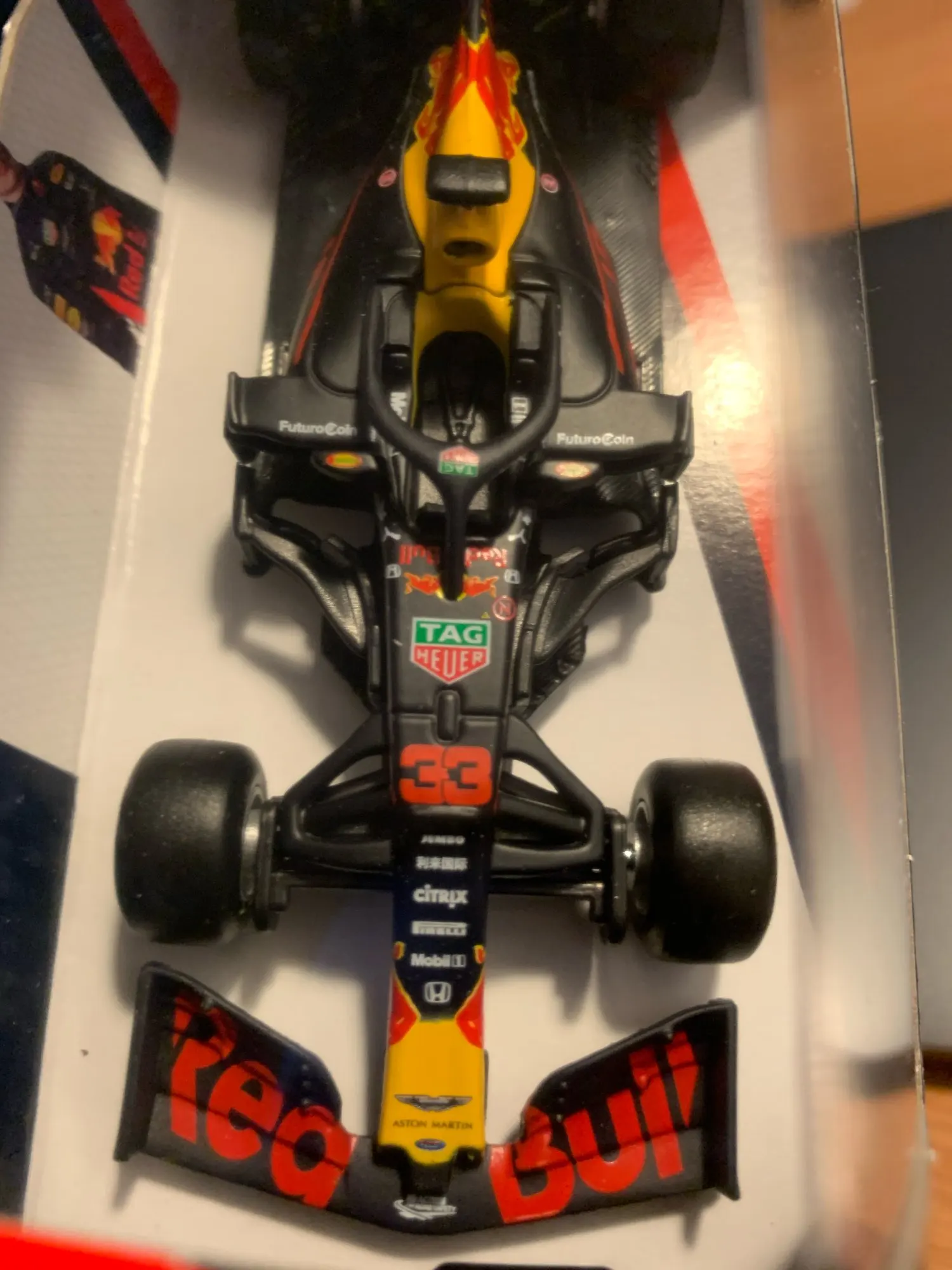 Во время открытия было несколько характеристик пыли, но продавец дал мягкую ткань для протирания. Логотип redbull имеет некоторые недостатки с одной стороны, но в противном случае это нормально. Это # rb15 также логотип Honda можно увидеть немного не на месте