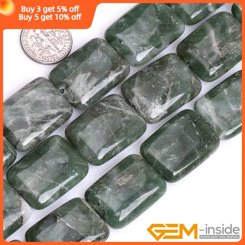 Бусины прямоугольные из зеленого авантюрина, бусины из натурального...