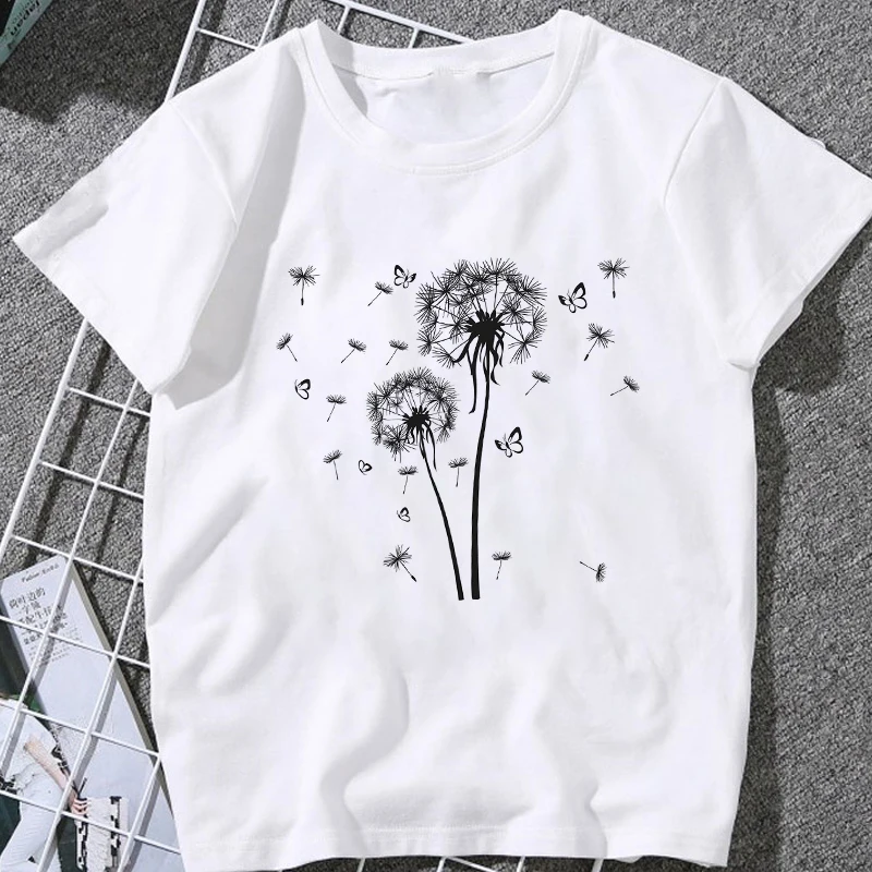 Модная футболка с принтом одуванчика, топы в стиле Харадзюку, женск...
