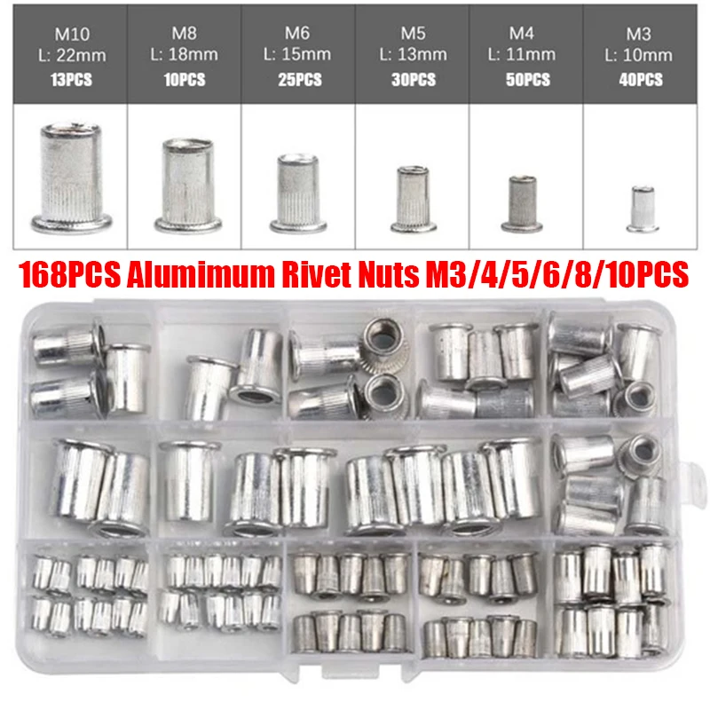 168 шт. алюминиевые заклепочные гайки M3456810 шт. ассортимент бытовых аксессуаров болты и гайки