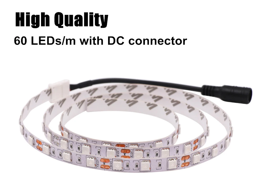 Светодиодная лента для внутреннего освещения, 12 В постоянного тока, 5050, лампа с разъемом постоянного тока, теплый белыйкрасныйзеленыйсиний, 1 м-20 м