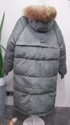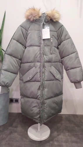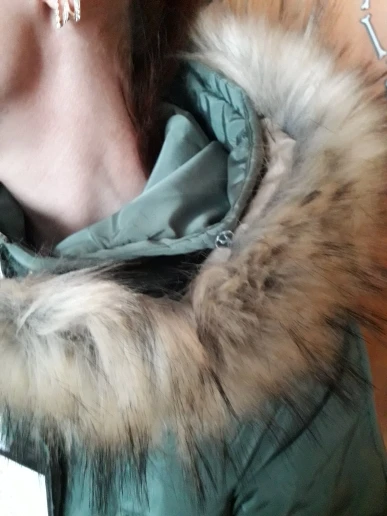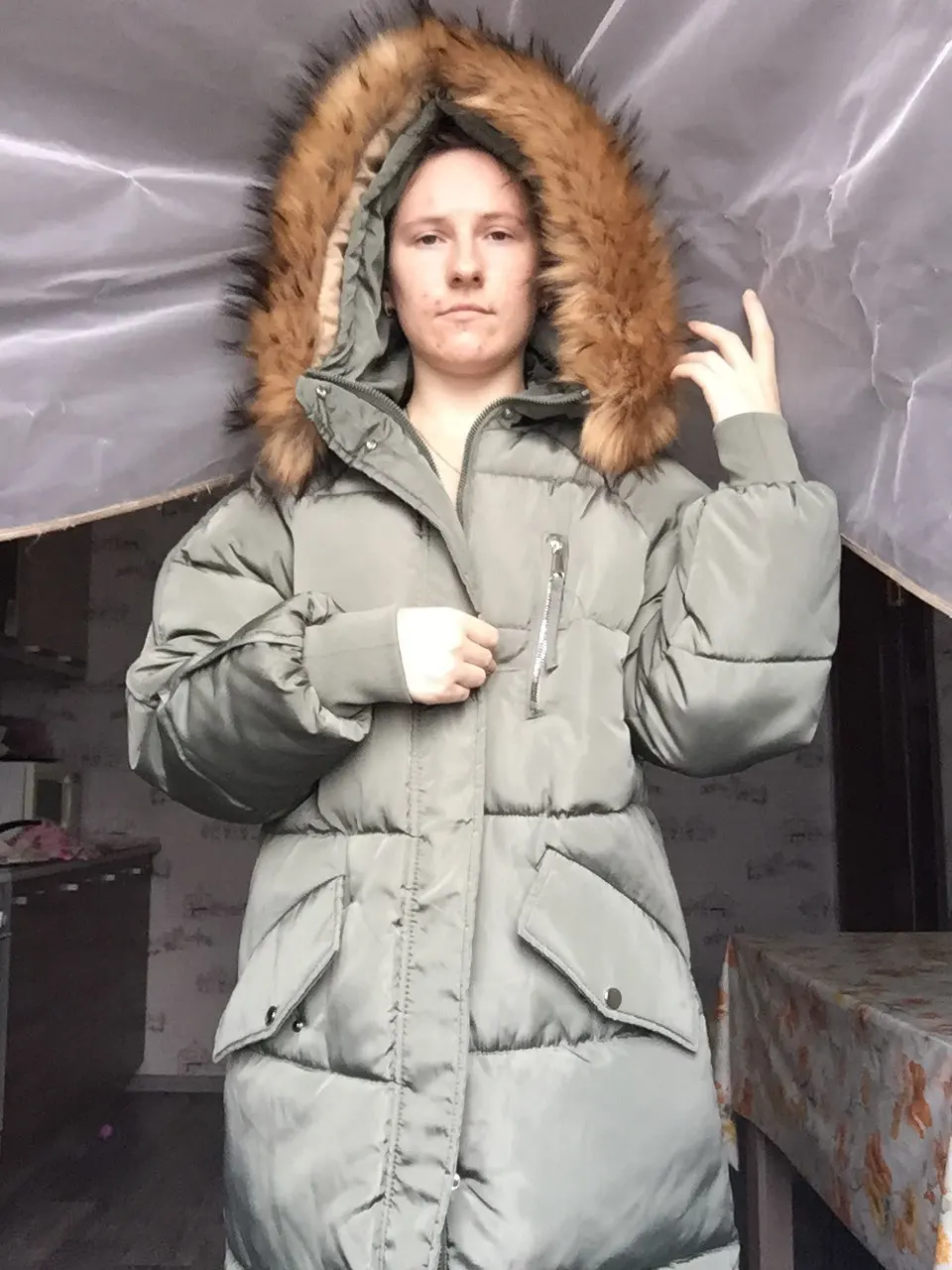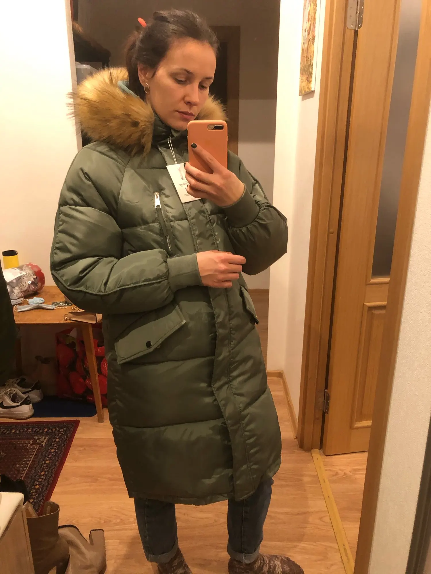 Куртка очень классная. Удачный цвет - тёмно-зеленый и немного припыленный. Прямой крой. Застёжка - тракторная молния с двумя собачками и кнопки. Карман на груди - обманка. Карманы нижние настоящие. Материал снаружи плащёвка, на фото и при искусственном освещении немного блестит. Куртка набита равномерно. Качество хорошее, пошита аккуратно, швы ровные, замки работают. Кнопки немного туговаты. Обычно ношу 40 рос.размер (xs), брала куртку в размере s - сидит свободно. Под неё с лёгкостью помещается оверсайз худи, при этом рукава не жмёт. На рост 160 см длина ниже колена, рукав длинный - есть запас ещё сантиметров 7. Внизу рукава манжеты, на мой рост их лучше подвернуть, тогда не видно, что рукав длинноват. Мех нормальный. Да, он не натуральный, но для искусственного выглядит неплохо. Пристёгивается на пуговицы к внешней стороне капюшона. Сам капюшон не отстёгивается. Если мех отстегнуть, то на капюшоне видны пуговицы, они прозрачные, так что особо не выделяются.