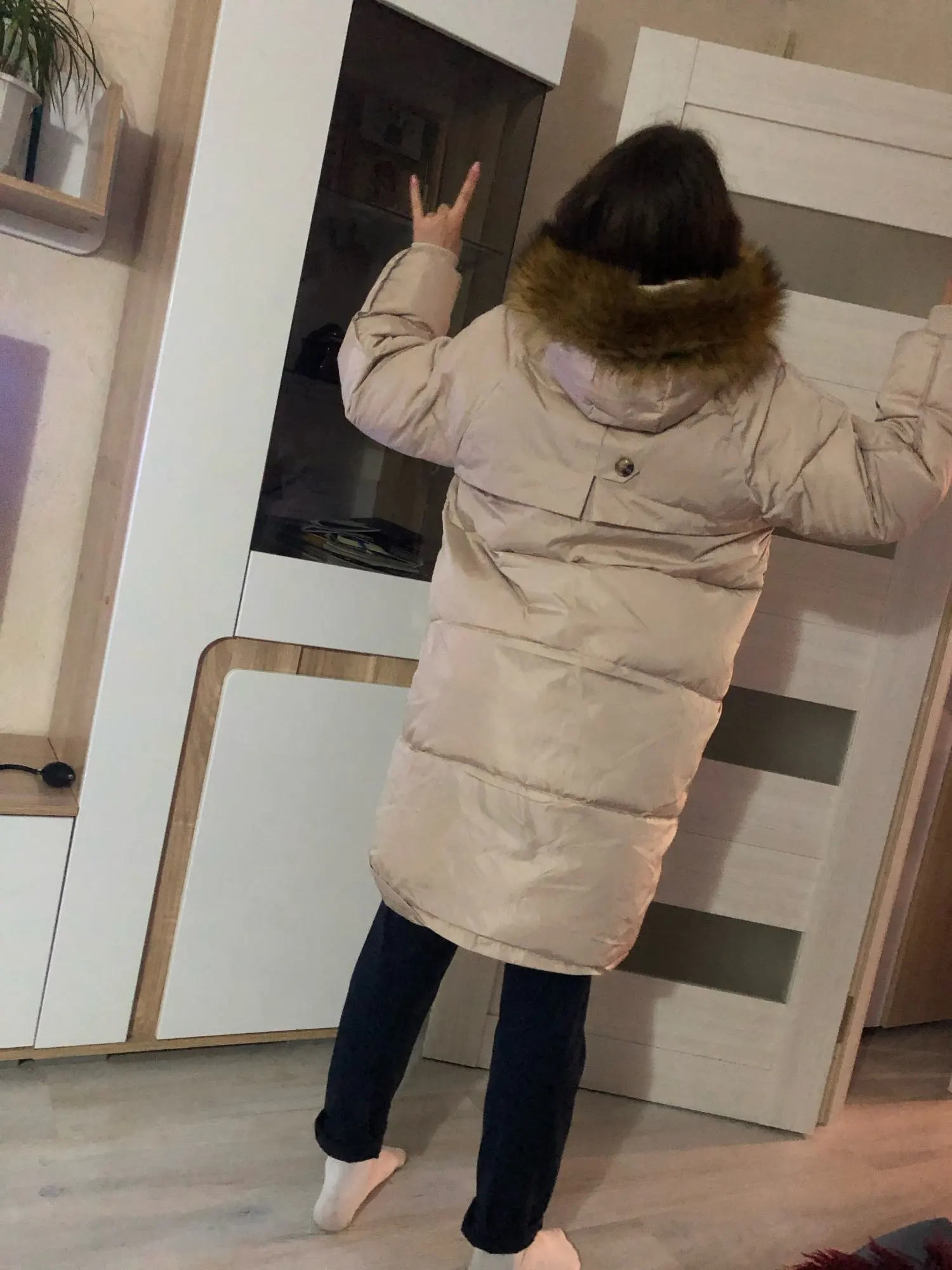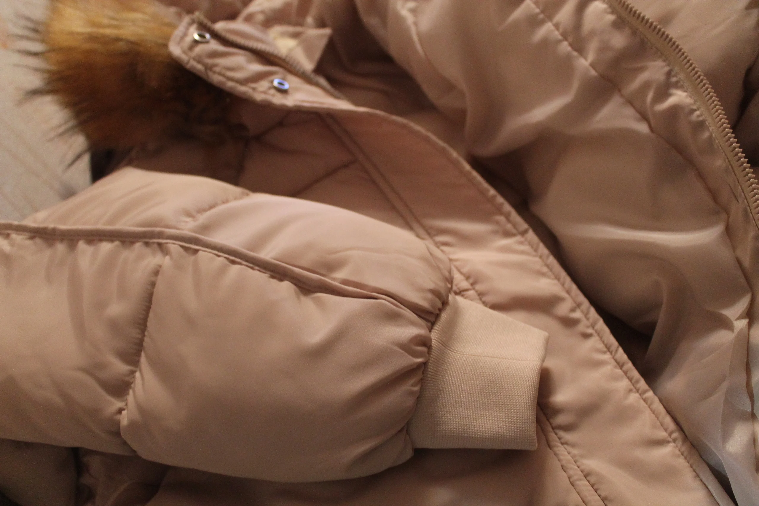 Куртка пришла в Санкт-Петербург за 10 дней!! бесплатной доставкой, что очень сильно порадовало. Заказ забирался в «Пятерочке». Качество достаточно хорошее, швы ровные, материал плотный и матовый, но на вспышке почему-то блестит, видимых недостатков нет. Наполнение нормальное, но пока не знаю, как будет в мороз, надеюсь не замёрзну. Мех - искусственный, но выглядит очень хорошо, пристёгивается на пуговки, не лезет и достаточно пушистый. Большой плюс в том, что куртка супер лёгкая и будто воздушная. Цвет - пыльно розовый, очень красиво смотрится в жизни. На рост 165см и вес 45кг размер S -идеально сел, по длине до колена и есть место под тёплый свитер.