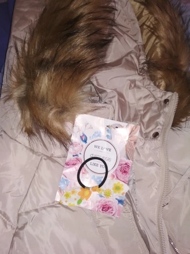 Дошло очень быстро за полторы недели в Сибирь, и это в Новый Год! Девчонка очень довольна. Подбирали размер по таблице из описания - подошел отлично! Чтобы выглядело также мешковато как на фото продавца - то есть по молодежному и модно, - нужно брать на размер больше! Швы ровные. Синтетический воротник под лису смотрится нормально. Наполнитель - якобы биопух Sustans - насколько это правда проверить не могу. Sustans это биополимер технологии компании DuPont. При отрицательной температуре -24°C на улице комфортно. Также продавец приложил резиночку для волос с бантиком и жасминовый ароматизатор в пакетике - очень приятно. Цена в 34$ - отличная. Рекомендую товар!