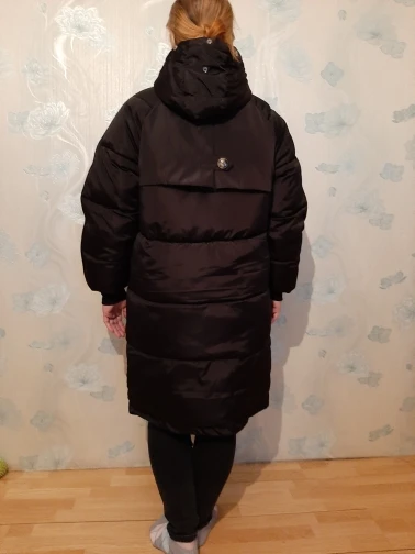 Куртку получила. Посылку продавец отправил сразу в день заказа. Доставка до Кирова 3 недели (неделю посылка пролежала в Москве на сортировке). Понравилась. В паре мест торчали нитки, но это не критично, быстро все убрала ножницами. На свой 42 размер (86-61-90) заказала размер М. Сначала думала будет совсем велика, но нет, сидит как оверсайз, можно надевать теплый объемный свитер под низ. На рост 168 длина до колен. Куртка теплая. За такую цену куртка супер! Продавец положил в подарок резинку.
