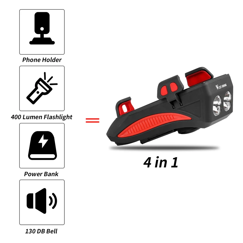 Фсветильник велосипедный, WEST BIKING, 4000 мА ч, многофункциональный, с USB-зарядкой, 400 люменов