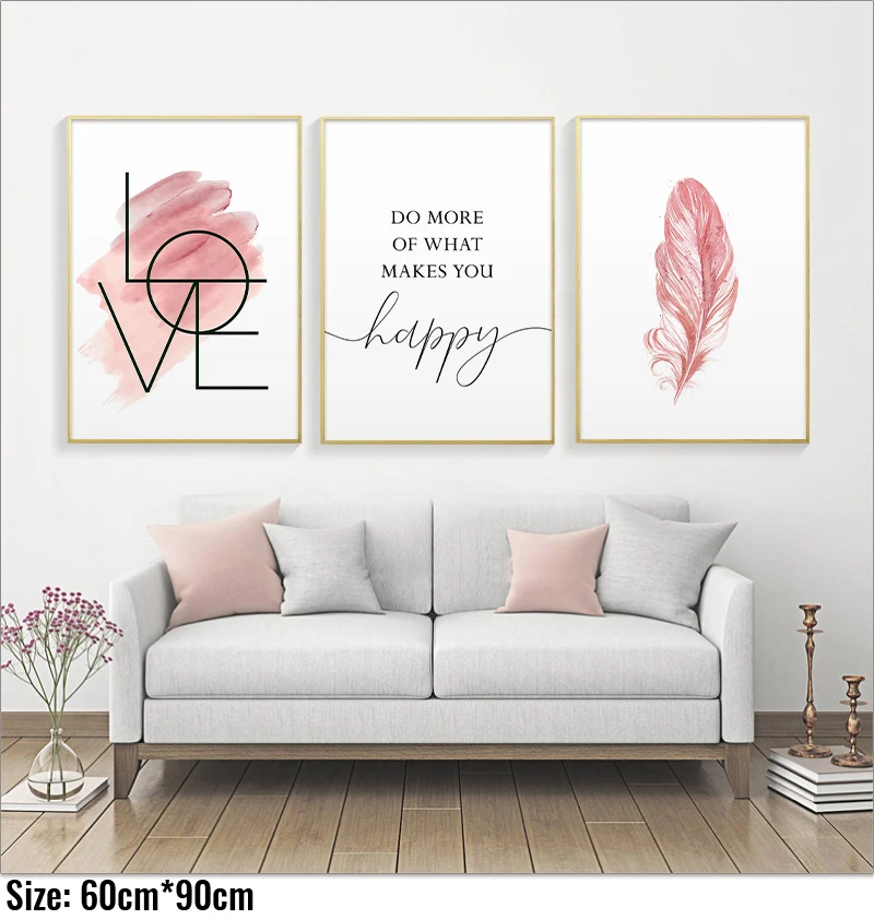 Настенная Картина на холсте с изображением румян и розовых перьев, вдохновляющая цитата, плакат и принт, Любовный знак, картина для декорирования комнаты девушки, домашний декор