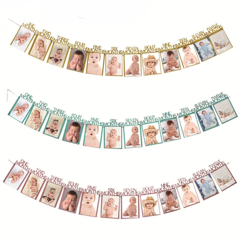 Детский душ дети Frist баннеры для дня рождения 12 месяцы фоторамка...