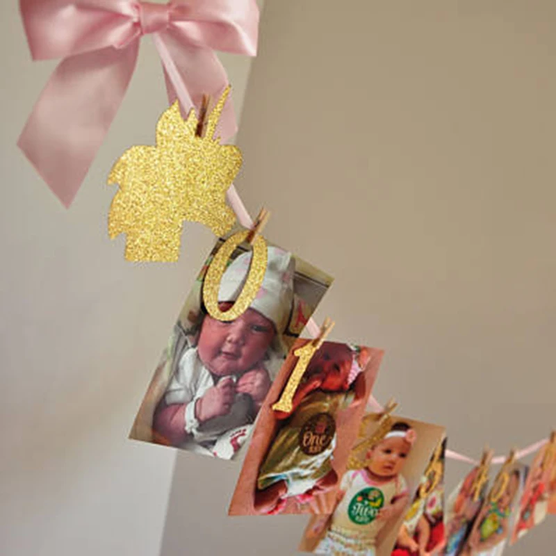 Баннер 12 месяцы фоторамка, украшения для первого дня рождения, 1 г...