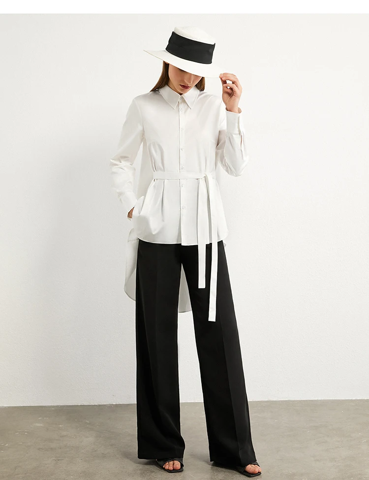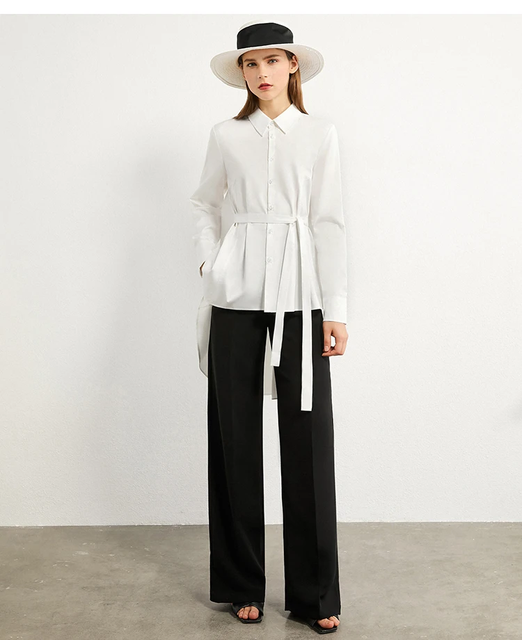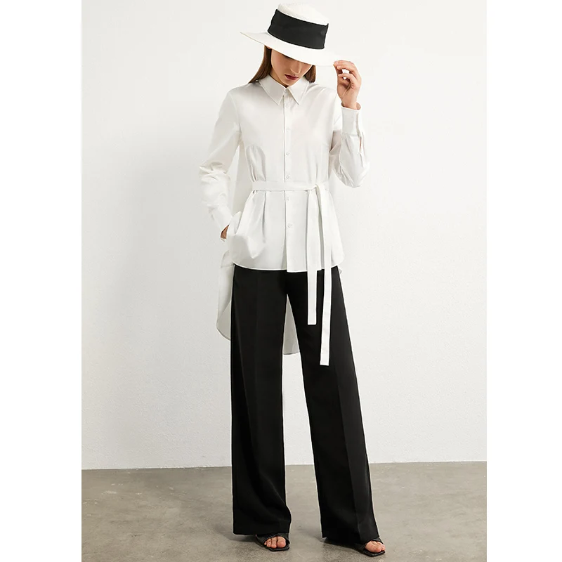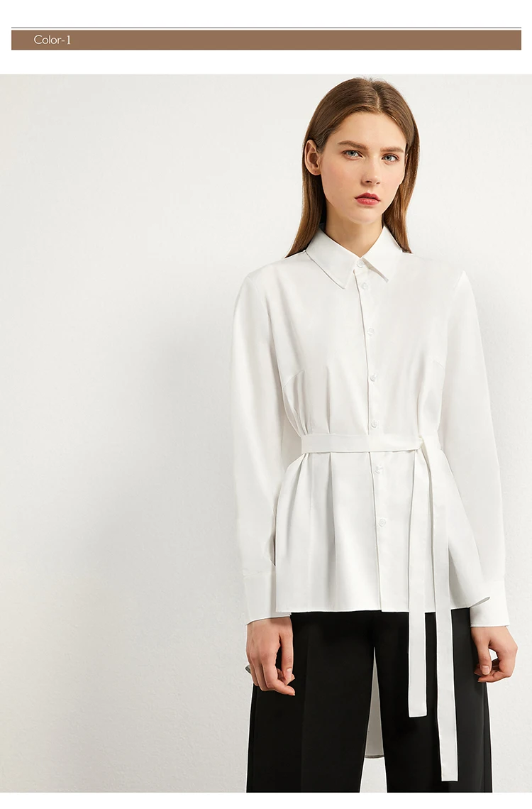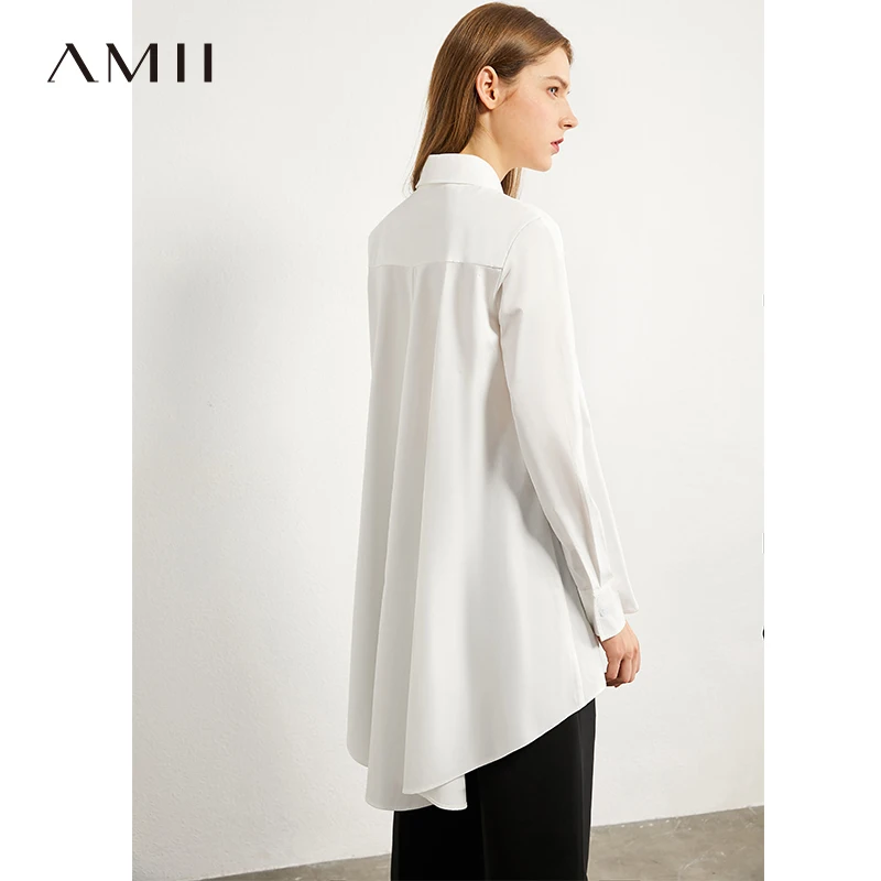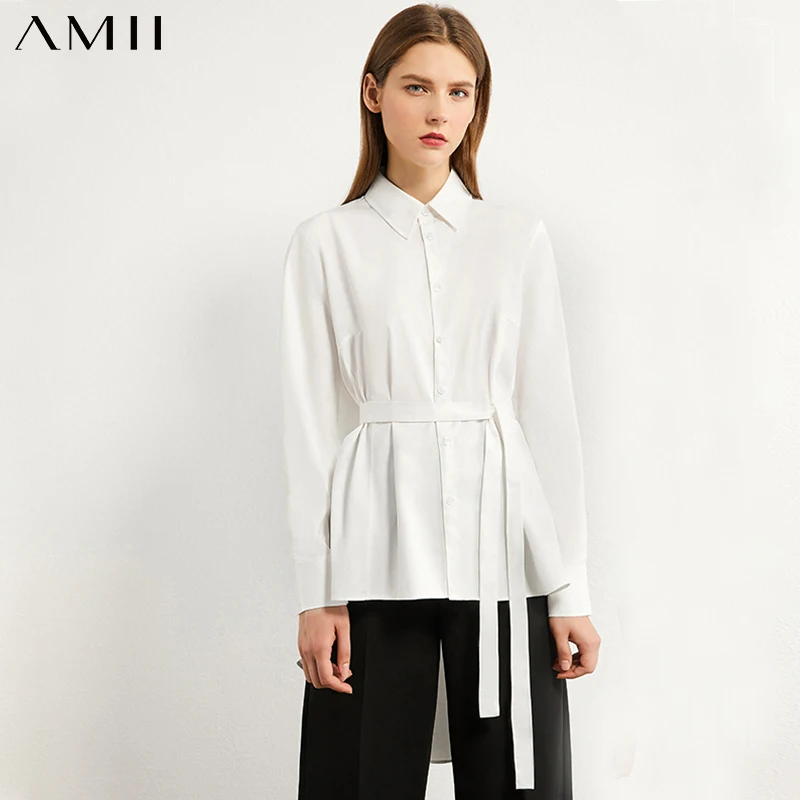 Рубашка AMII в минималистском стиле женская с лацканами, Повседневная модная однобортная рубашка с длинным рукавом, с поясом, 12070279
