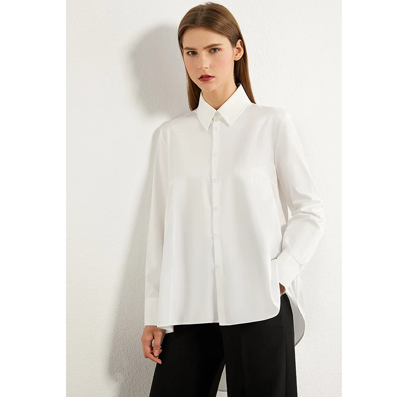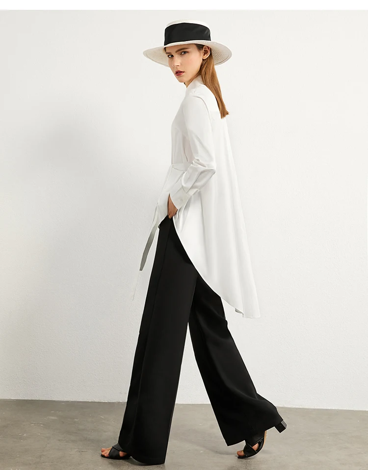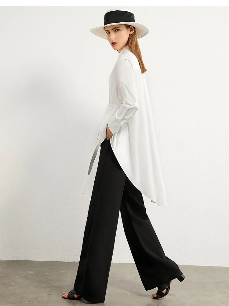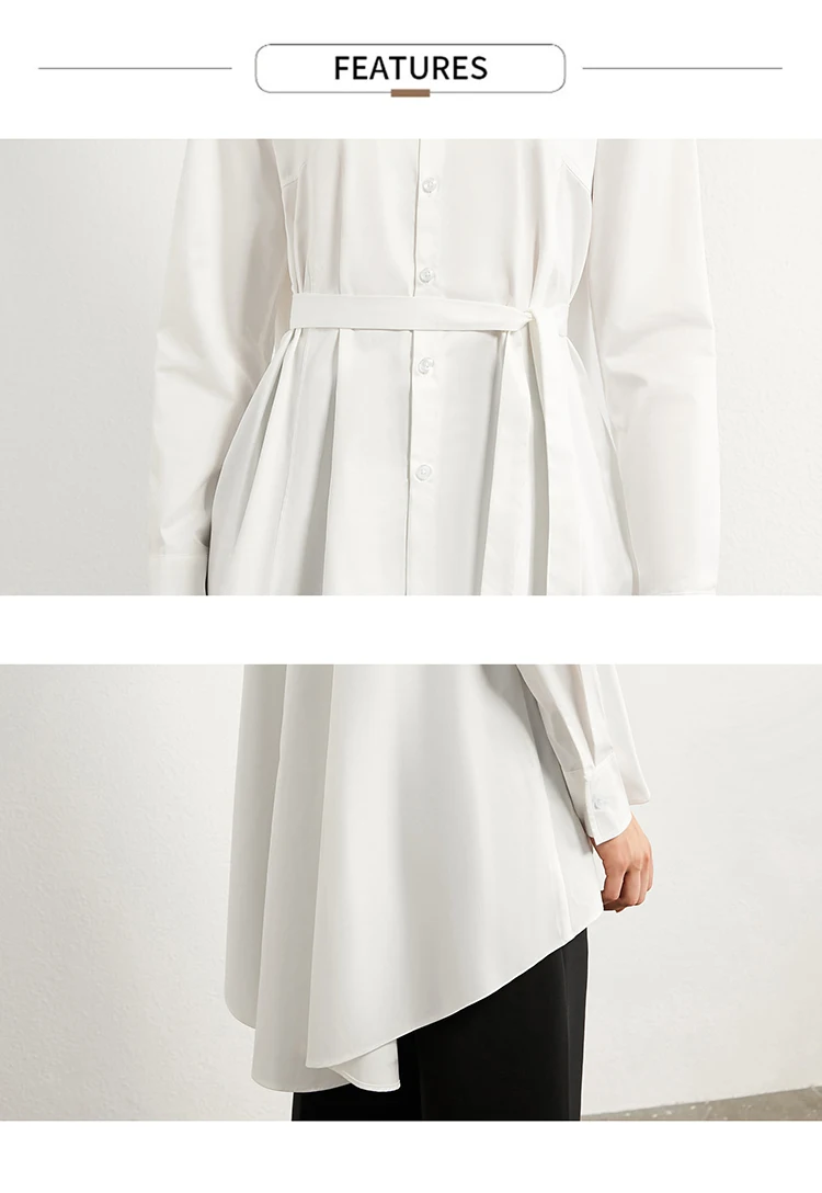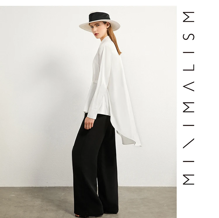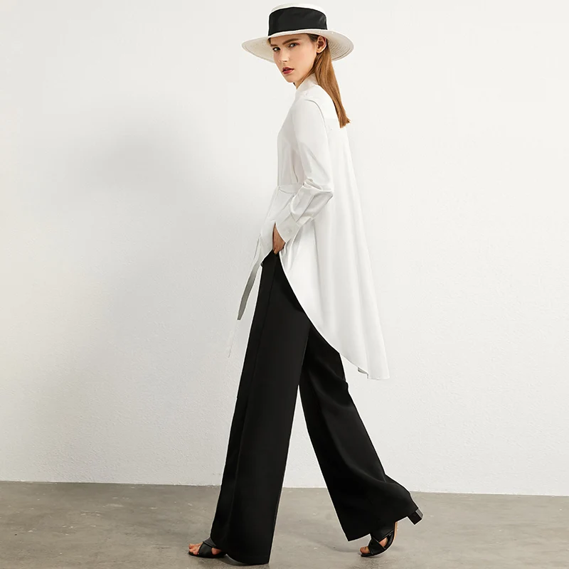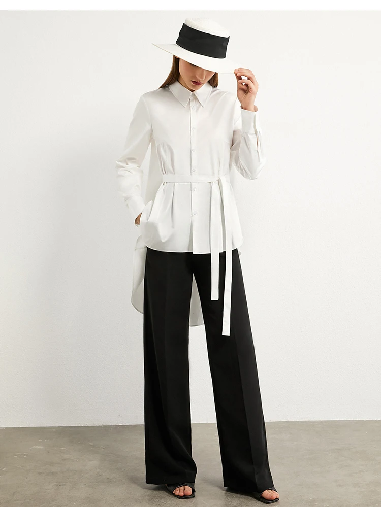 Рубашка AMII в минималистском стиле женская с лацканами, Повседневная модная однобортная рубашка с длинным рукавом, с поясом, 12070279