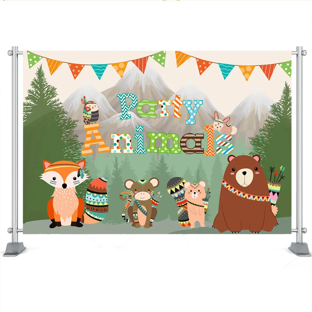 Праздничный фон для фотосъемвечерние с изображением детского душа горы День Рождения Вечеринка фоны медведь лиса чипмунк мышь фотобудка