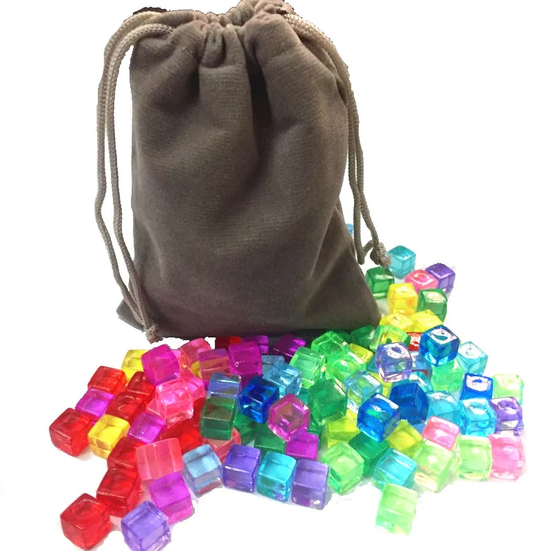 100 шт.компл. с сумкой, прозрачный, серый, квадратный, разноцветный, Кристальные кости шахматных фигур, прямоугольный сетчатый куб для игры-головоломки, 8 мм
