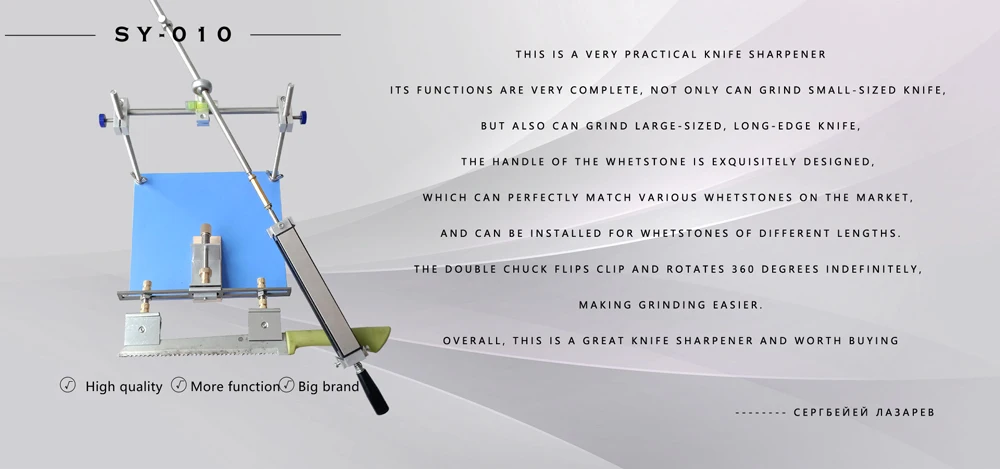 Это профессиональная точилка с фиксированным углом, которую мы разработали до сих пор. Он может измельчать различные инструменты под самым маленьким углом. И ручка точильного камня имеет несколько функций, и может работать 4 различных точильных камня одновременно. И может держать любую длину точильного камня, более практичной, чем точилка ruixin pro. Нет необходимости в любом рабочем столе, его можно разместить где угодно для полировки. Изысканная упаковка, полные установочные инструменты и аксессуары, а также руководство на английском языке. В посылка входит набор точилок, оснащенных камнями для заточки алмазов 200 #800 #1500 #, 1 полоска из воловьей кожи.