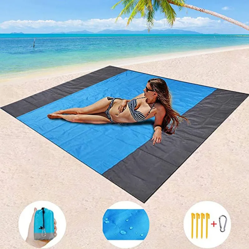 Портативный пляжный коврик для пикника, карманное одеяло, водонепроницаемый Пляжный коврик, коврик, матрас для пикника, кемпинга, палатки, коврик-синий, серый