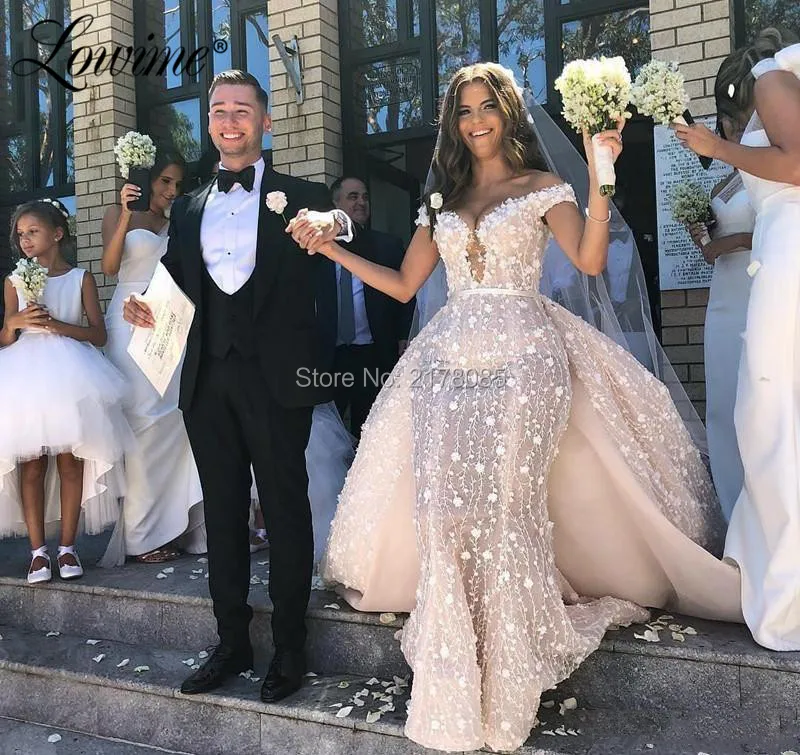Африканское свадебное платье с открытыми плечами, Роскошные свадебные платья, женское свадебное платье со съемным шлейфом, индивидуальный пошив, 2020