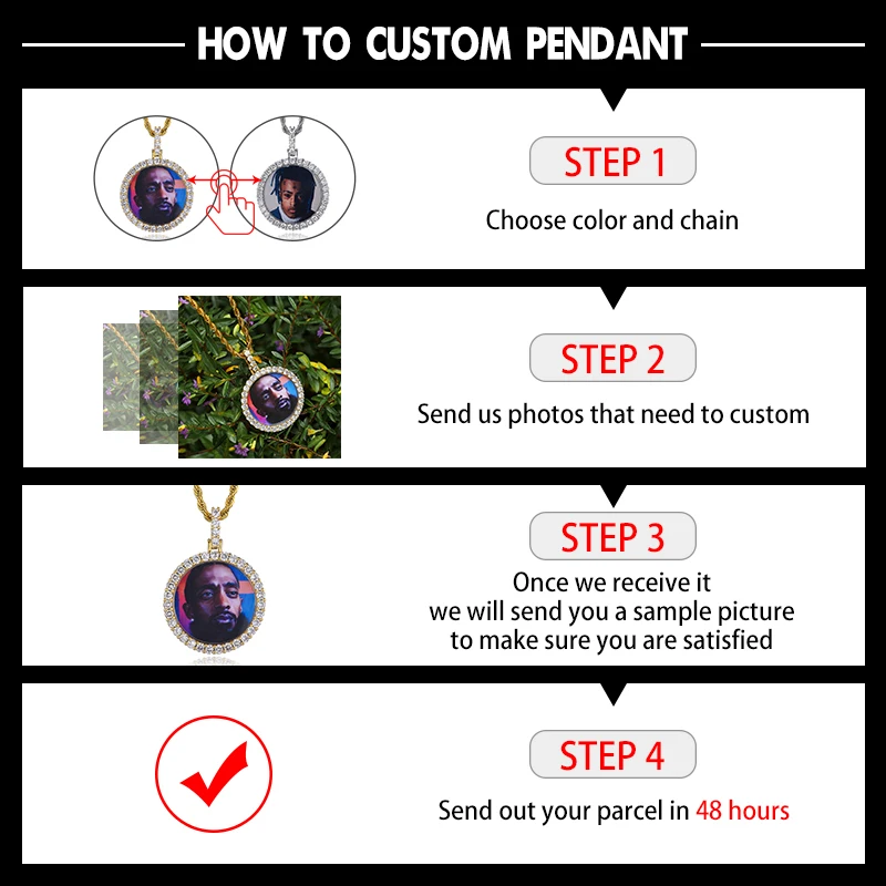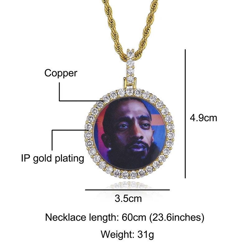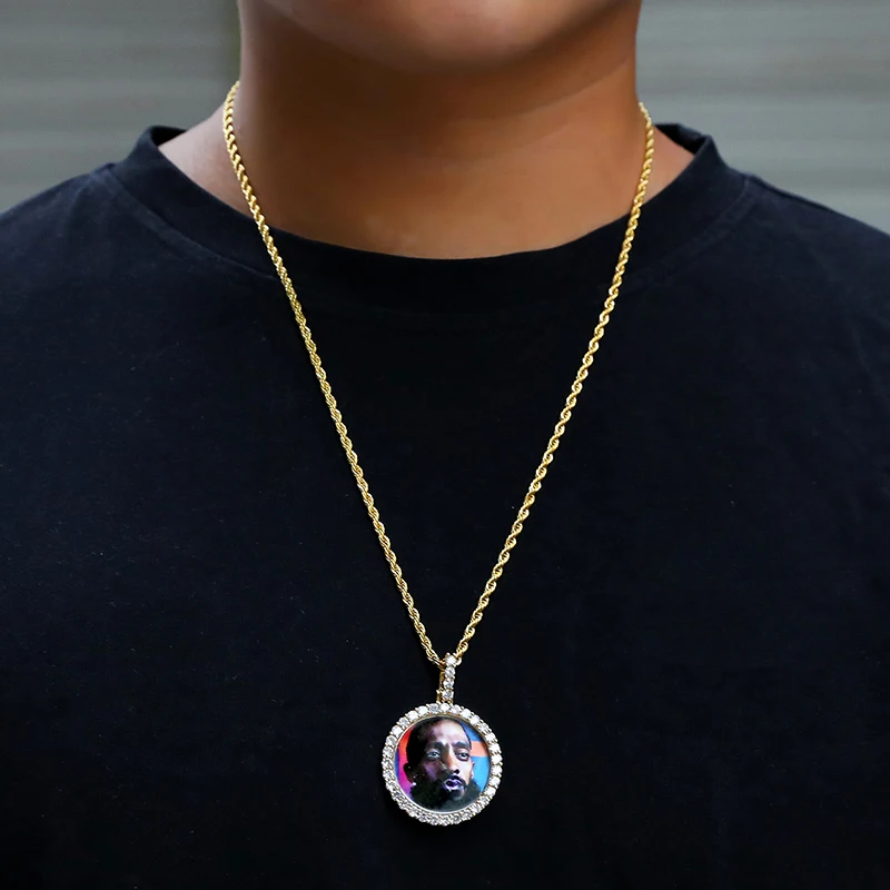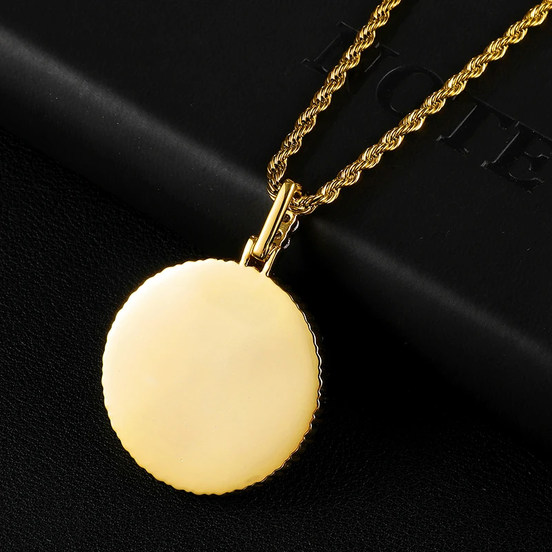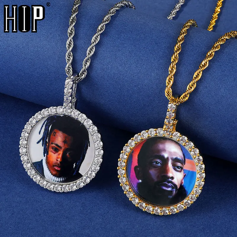 Хип-хоп круглый заказной фото медальоны Iced Out Bling твердая задняя AAA кубический циркон персонализированные ожерелье и кулон для мужчин ювелирные изделия