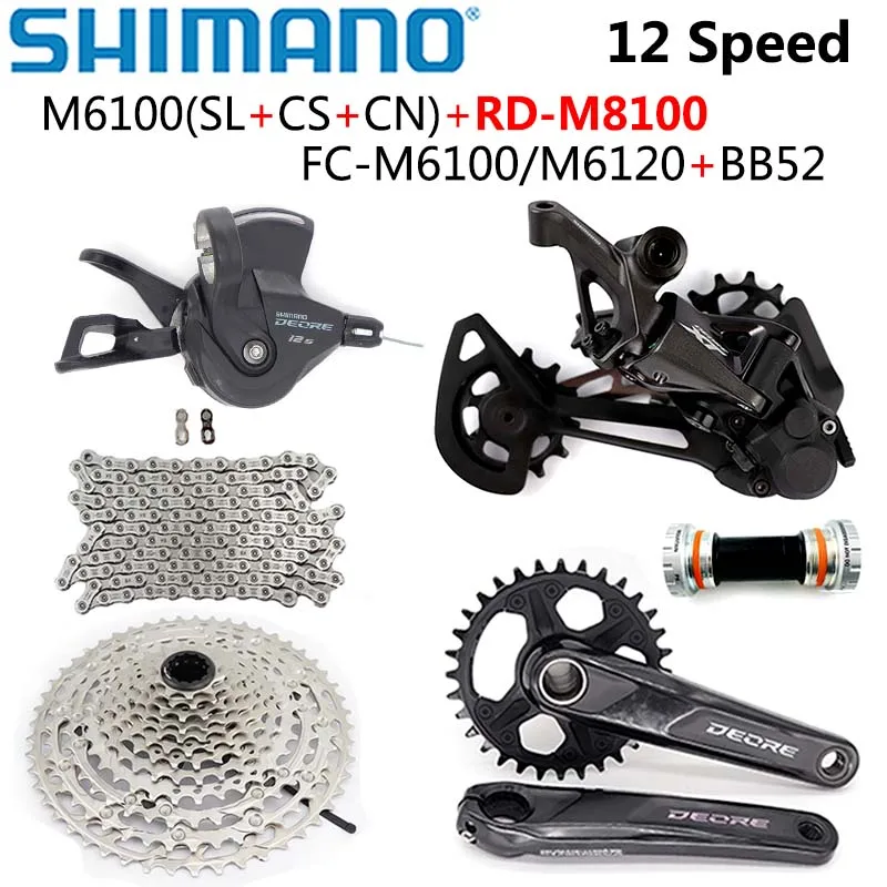 Система переключения передач SHIMANO DEORE M6100, M7100, M8100, 2020 мм, 170 мм, 32T, 12 Скоростей, кассета, шатуны M6120