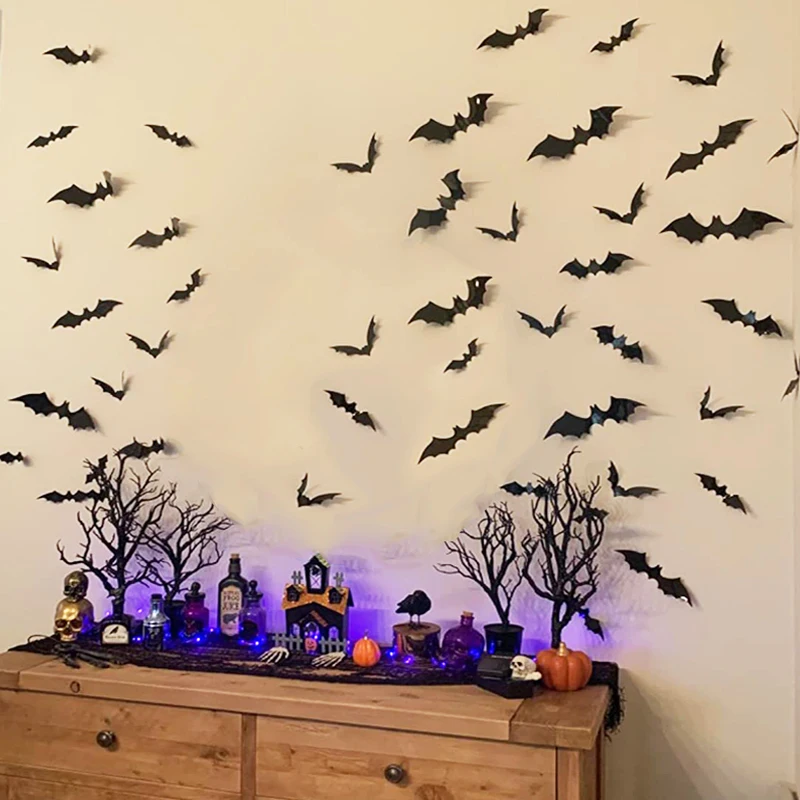 3D Декоративные страшные черные летучие мыши на Хэллоуин, настенная наклейка, украшение окна, декор для Хэллоуина, товары для вечерние